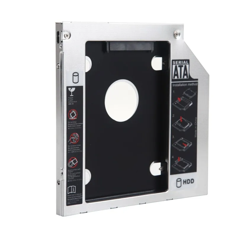 2-й жесткий диск Optical bay Caddy / Adapter обеспечивает вам максимальную гибкость хранения данных. С помощью второго жесткого диска/SSD в вашем ноутбуке для замены оптического диска, вы можете ускорить резервное копирование важных приложений и критических данных (Просто удалите CD-ROM диск и поместите Caddy (с дополнительным жестким диском) на своем месте;