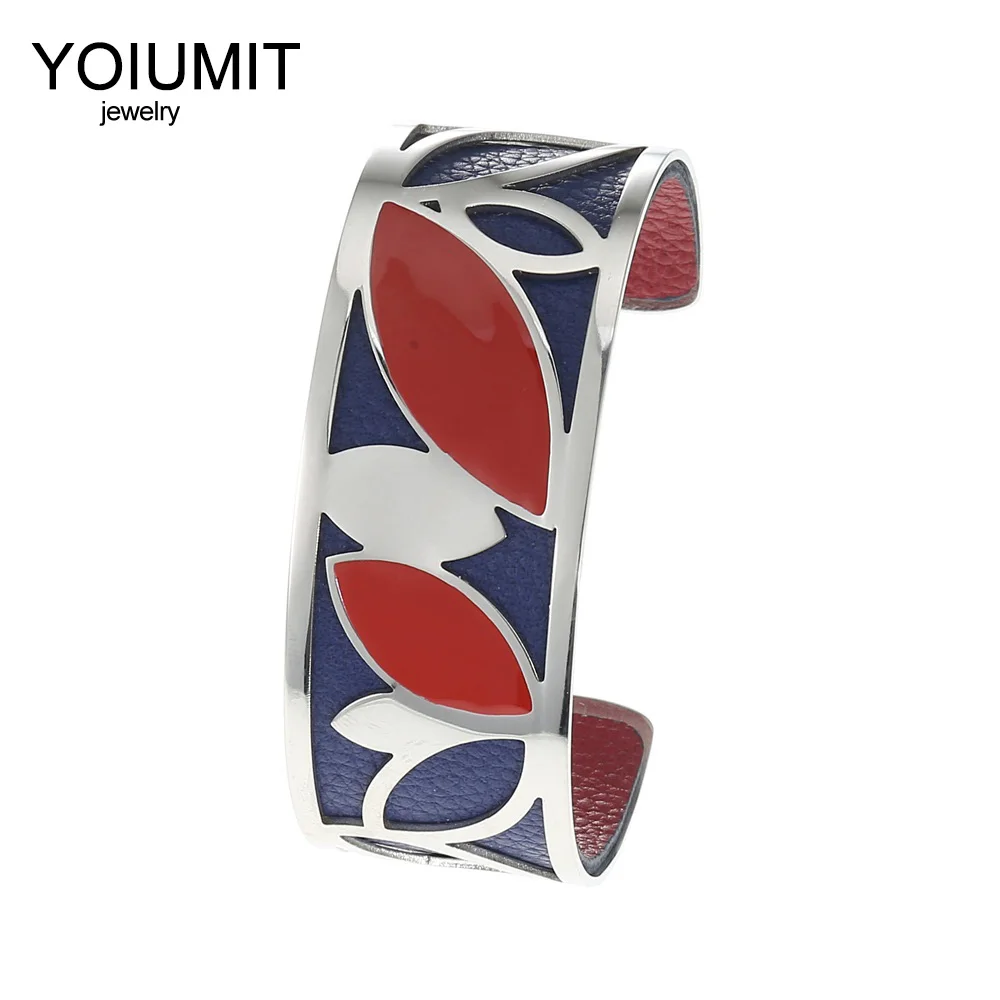 NameYoiumit Leaf Cuffs Bangles Femme Bijoux Enamel