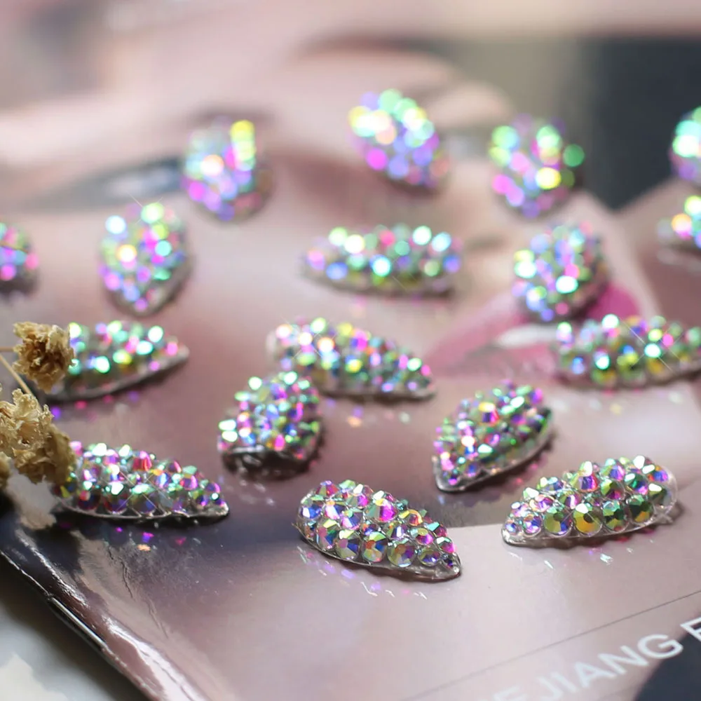 Стразы AB блестящие искусственные короткие заостренные мягкие искусственные ногти на шпильке полное покрытие готовый продукт 1 шт.
