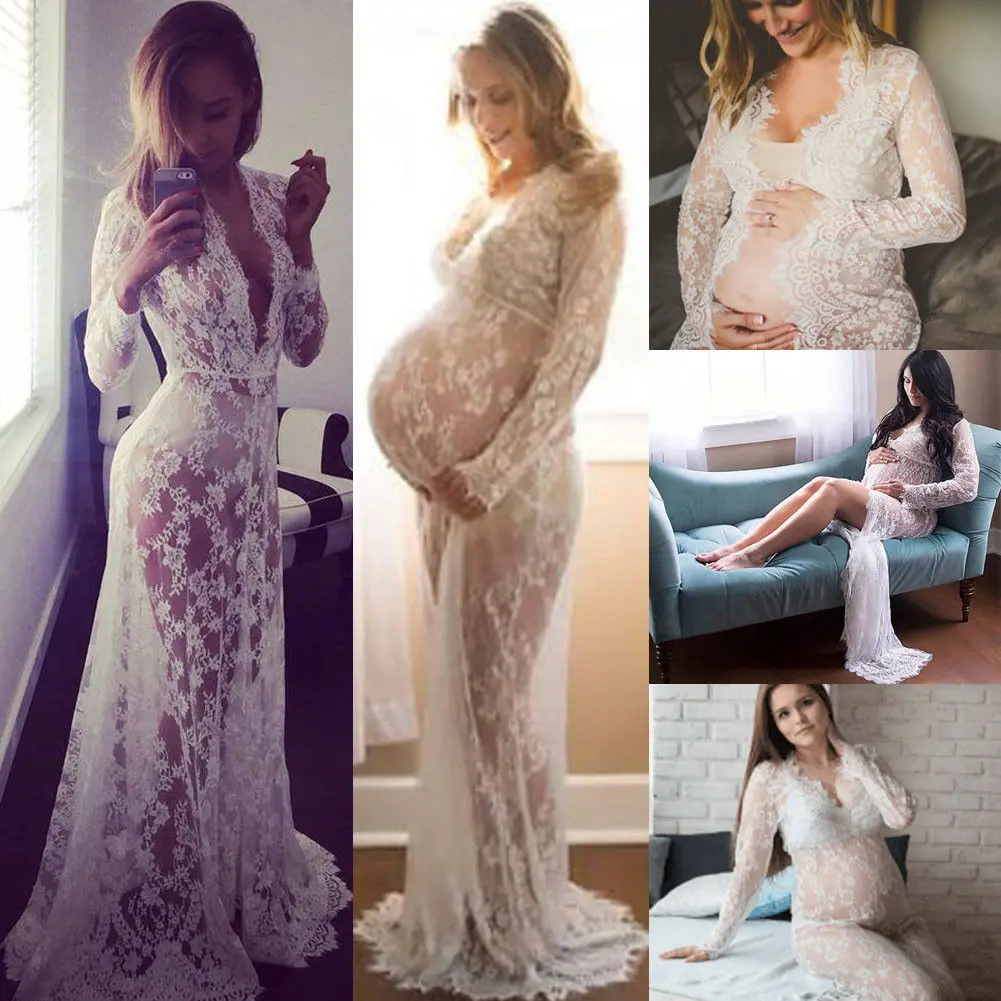 Сексуальное кружевное платье для беременных женщин длинное платье м...