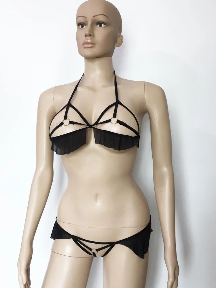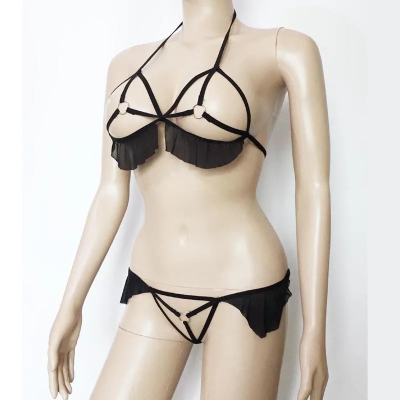 Сексуальный бюстгальтер с открытой чашкой, топ и трусики, бикини, нижнее белье с металлическими кольцами и кружевной отделкой, комплект нижнего белья без выреза, фантазия, Лидер продаж