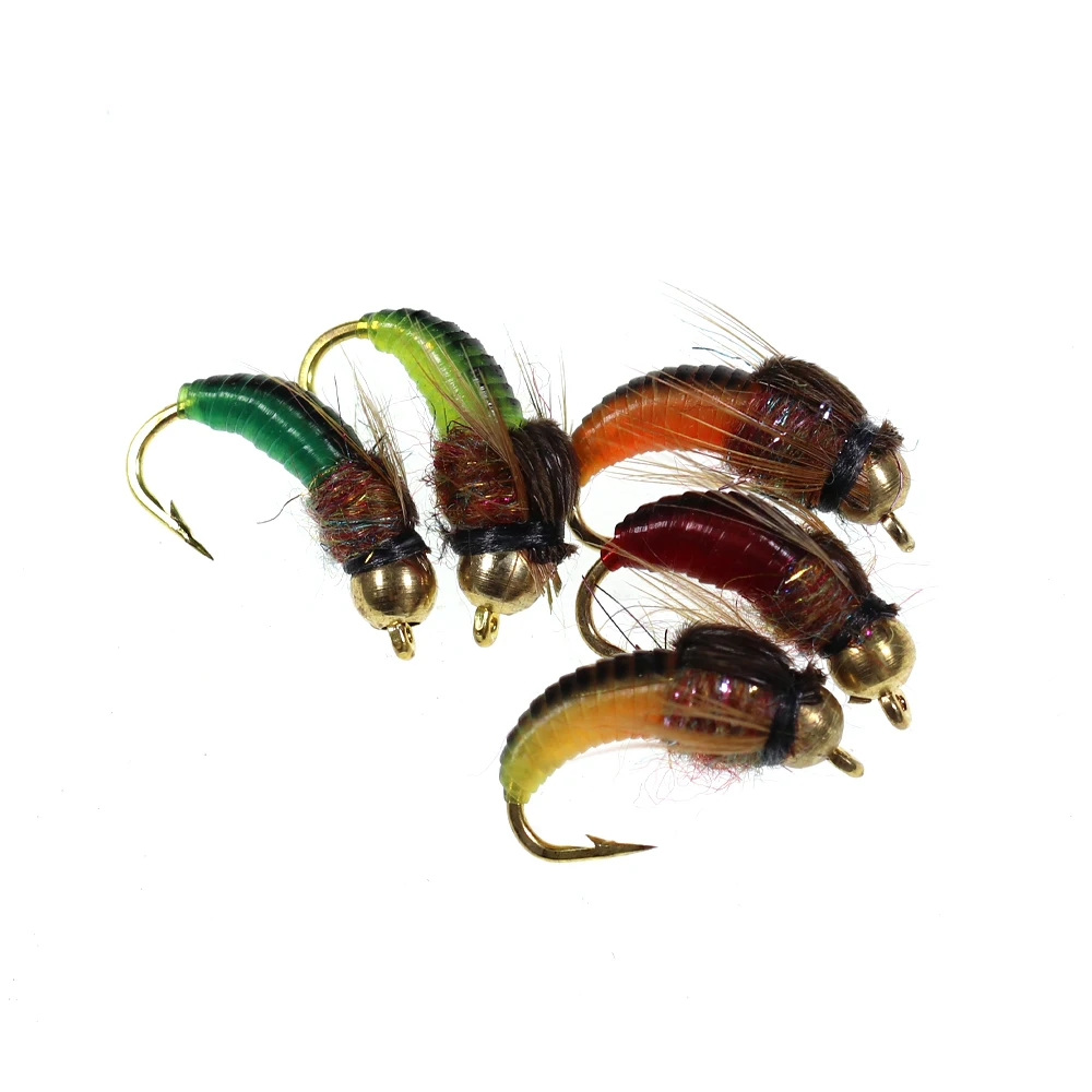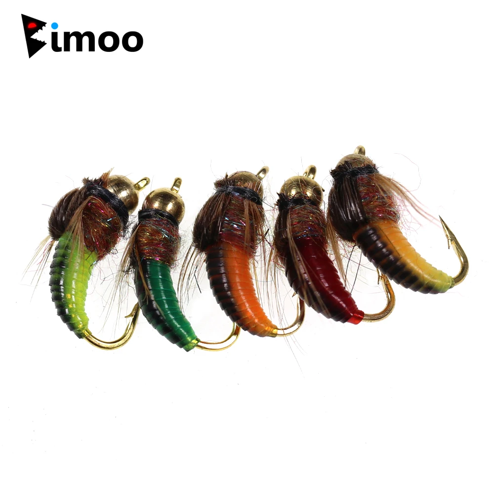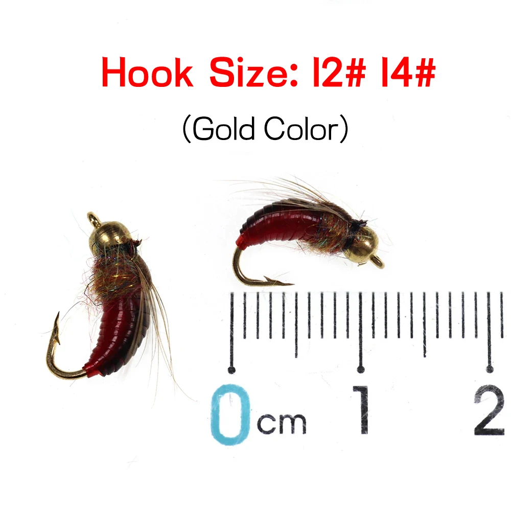 Bimoo 8 шт. #12 #14 латунная бусина голова быстрого просеивания Нимфа Скад муха Жук червь для форели Рыбалка Нимфа искусственная приманка-насекомое приманка