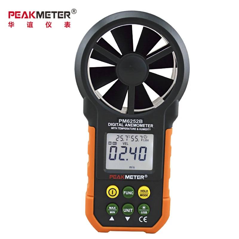 PEAKMETER PM6252A PM6252B ЖК-цифровой анемометр, термометр, измеритель скорости воздуха, влажности, подсветка температуры RH USB порт