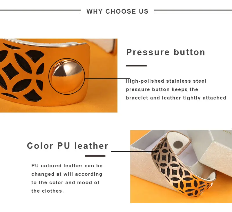 Информация о продукте Тип Манжеты: браслет из нержавеющей стали. Материал: нержавеющая сталь + из искусственной кожи. Пол: всех женщин. Сатл: около 25 мм/22,5 г. Дизайн: двусторонний Браслет-манжета из искусственной кожи DIY. Повод: Свадьба, помолвка, юбилей, вечерние, подарок на день Святого Валентина. Примечание: 1. DIY браслет ювелирные изделия, полированный, регулируемый, Реверсивный взаимозаменяемый из искусственной кожи. 2. Удобное Сенсорное стекло. Уникальное творчество, один браслет, весь мир. 3. Мы стремимся производить высококачественные товары с гламурным, продуманным и креативным дизайном.