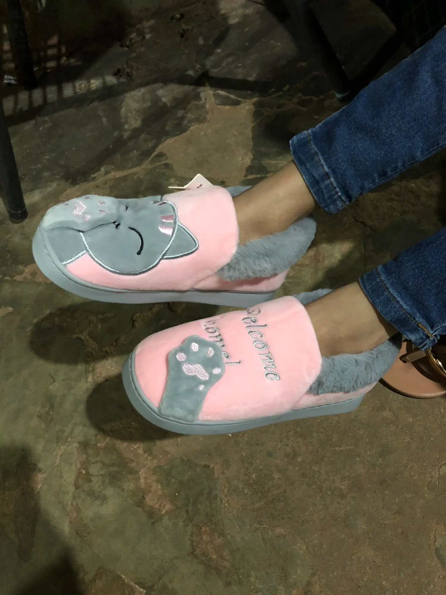 Тапочки домашние женские, зимние, теплые, Нескользящие, с изображением из мультфильма Lucky cat