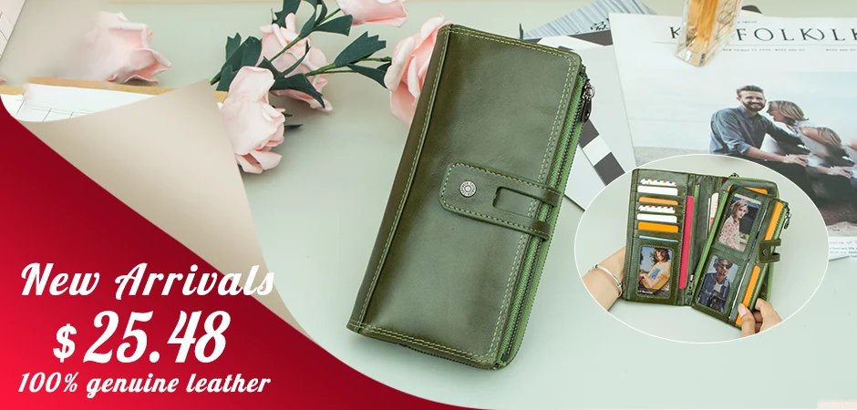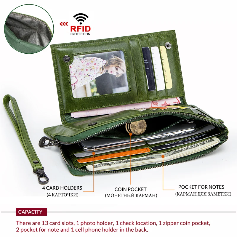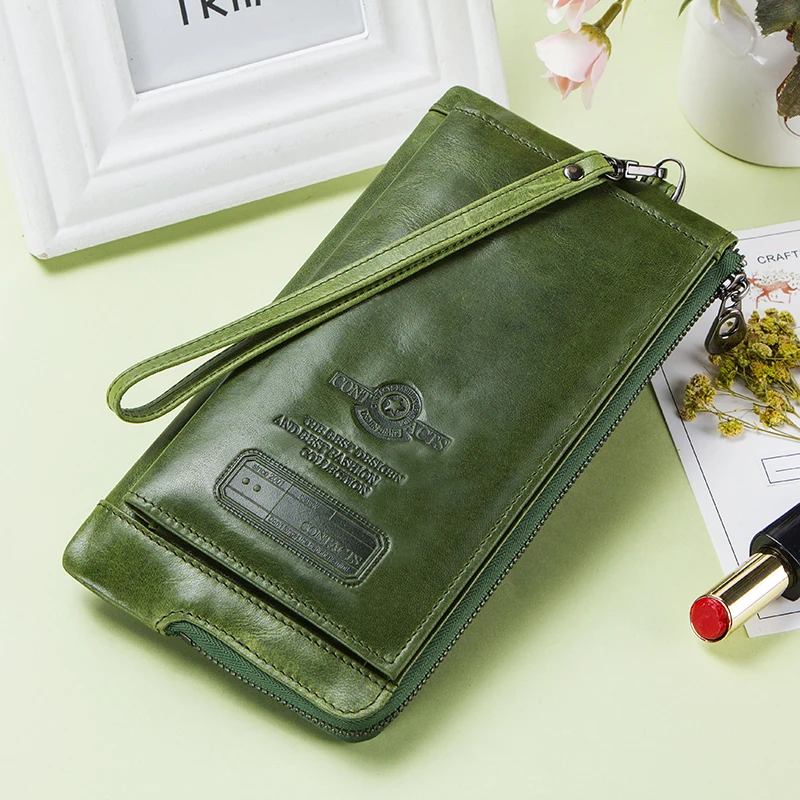 Кошелек женский из натуральной кожи, на молнии, с Rfid-защитой