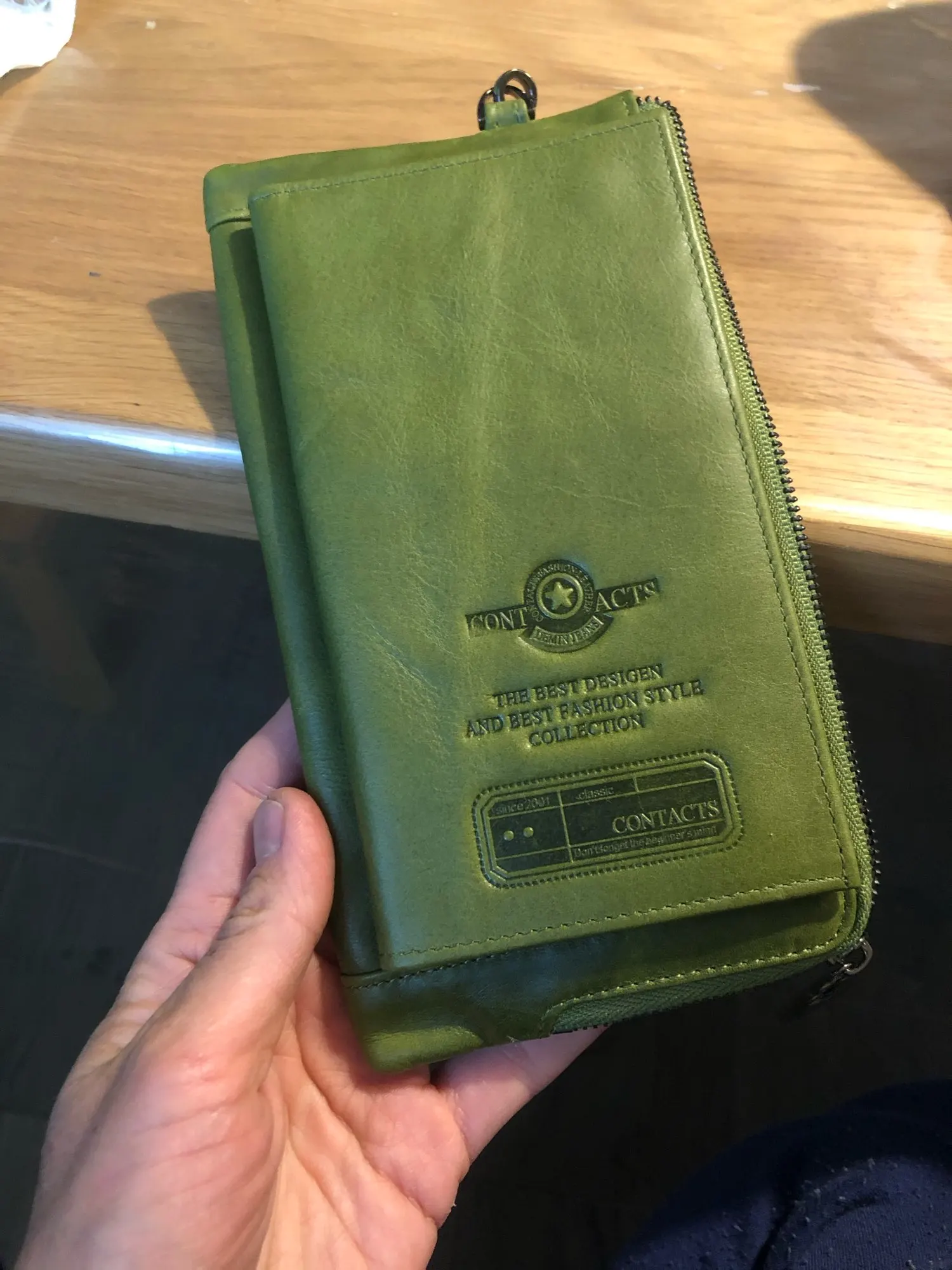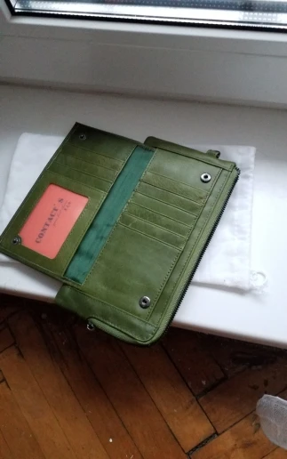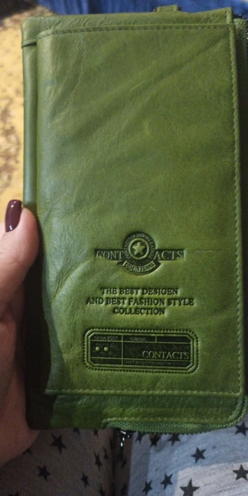 Заказываю уже второй, подарок подруге. Этот чуть отличается по цвету от моего- более светлый (брала оба раза зелёный), икожа чуть более матовая. В остальном оч крутой кошелёк, со своим хожу уже год. Пришло буквально молниеносно по меркам Алика (как и первый). И кожа, ребята. Это натуральная кожа. Мягкая, не толстая. Мне всё очень нравится.