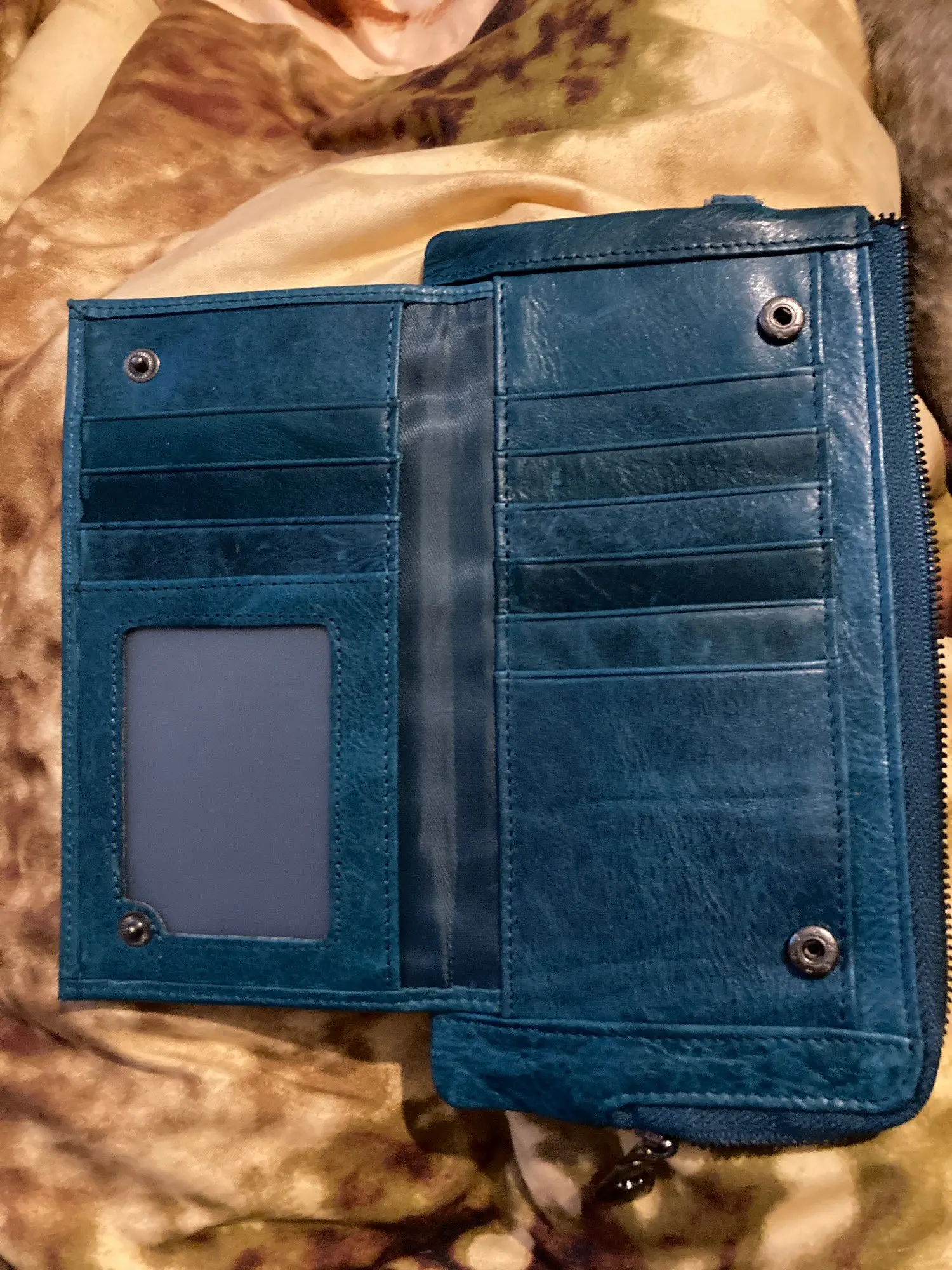 Спасибо продавцу , получила очень быстро , продавец положил подарочек , милый талисман , так приятно ..Спасибо огромное Кошелёчек мягкий , цвет сине зелёный, но мне понравился