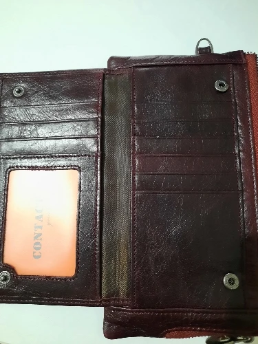 Кошелек хороший. Немного отличается цвет, он скорее темно-бордовый, а не красный. Такой кошелек заказываю уже второй раз, первый прослужил несколько лет (от другого продавца).