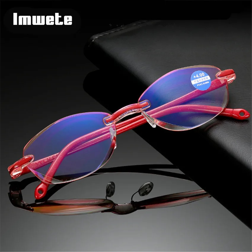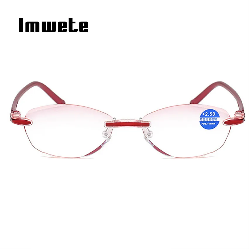 Женские очки для чтения Imwete без оправы с защитой от синего света, очки для дальнозоркости и дальнозоркости, безрамные очки для чтения, 1,0, 1,5, 2,0
