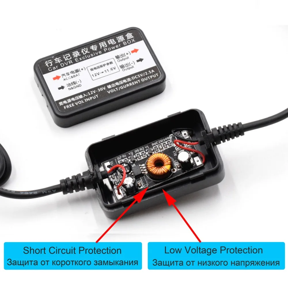 Автомобильный преобразователь постоянного тока XCGaoon, модуль входа 12 в 24 В, выход 5 в 3,1 а с мини-USB-кабелем (изогнутый слева), М, защита от низкого напряжения