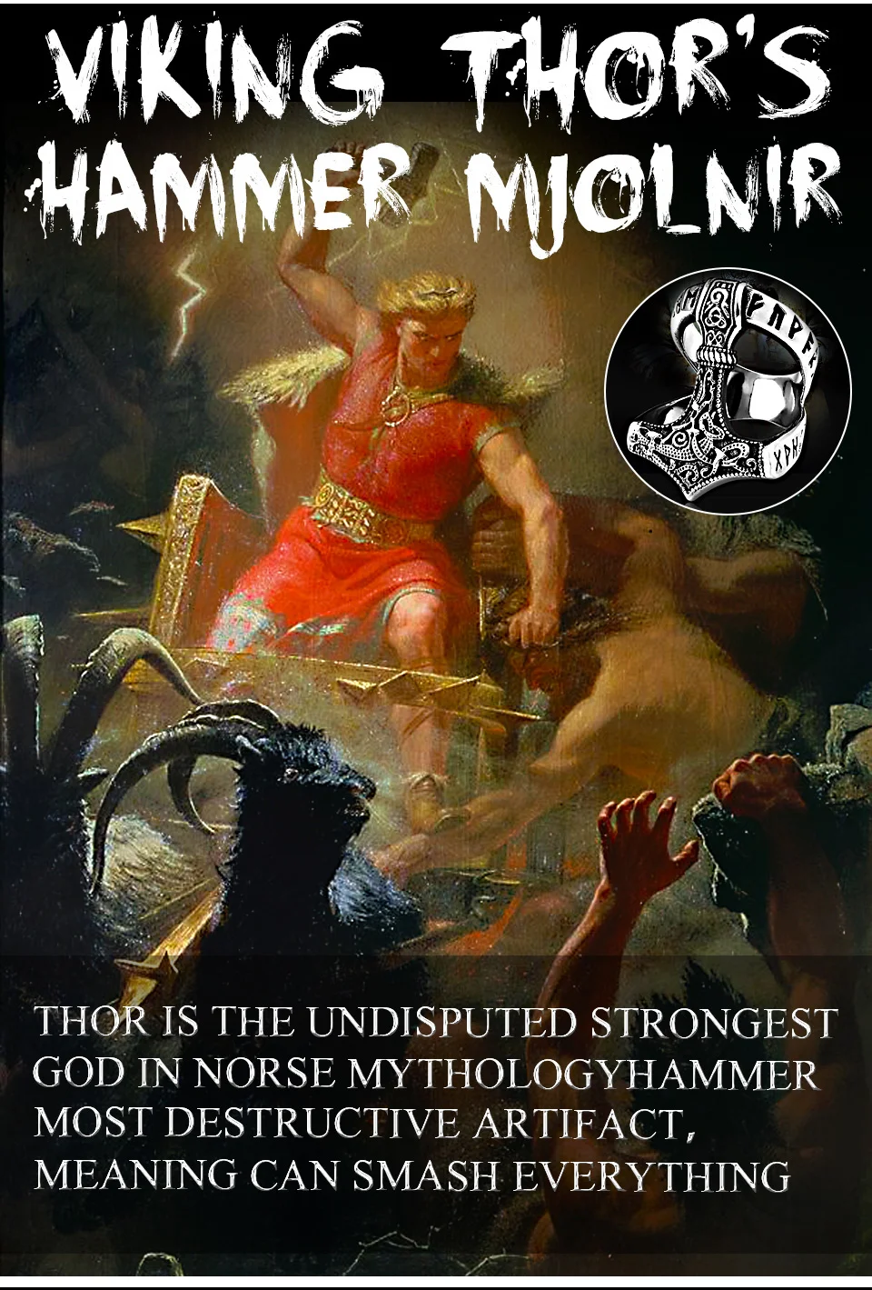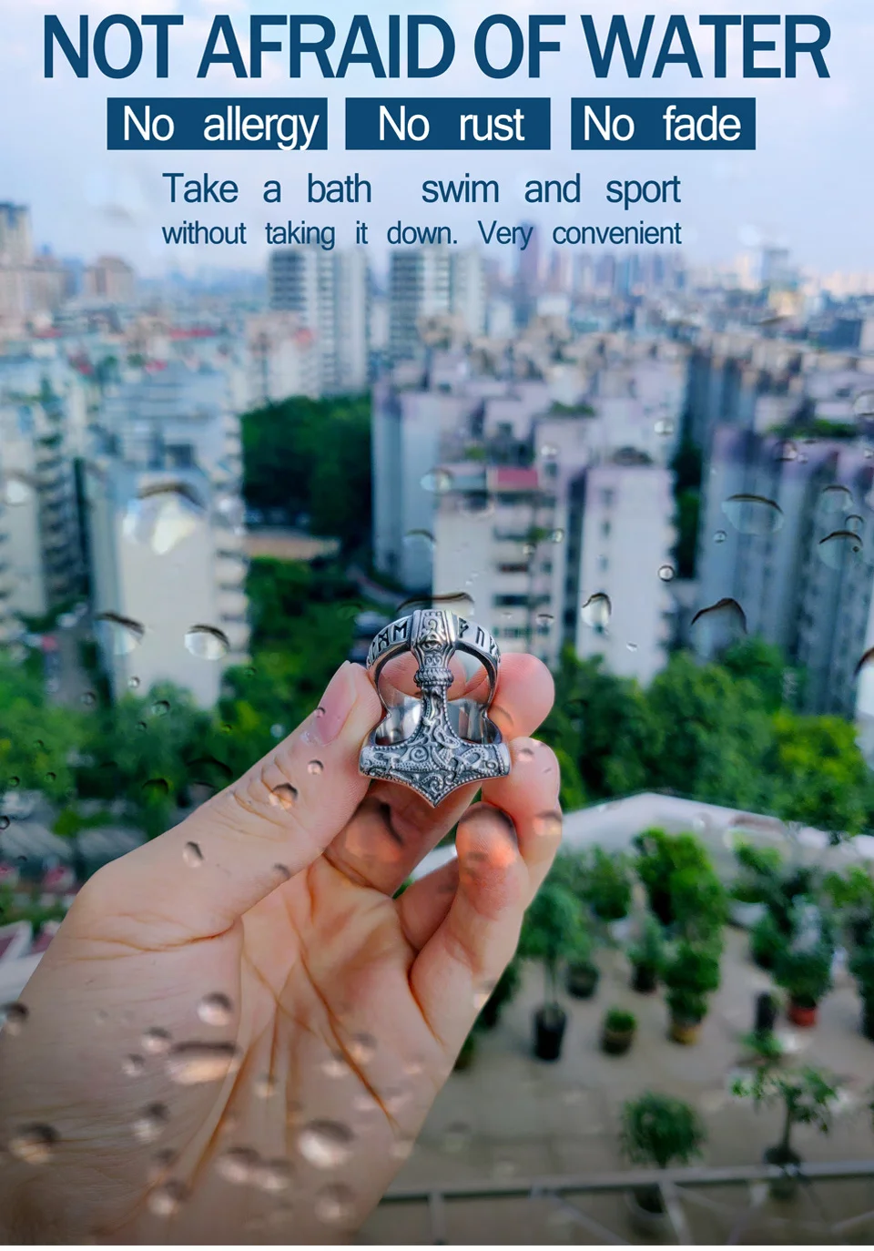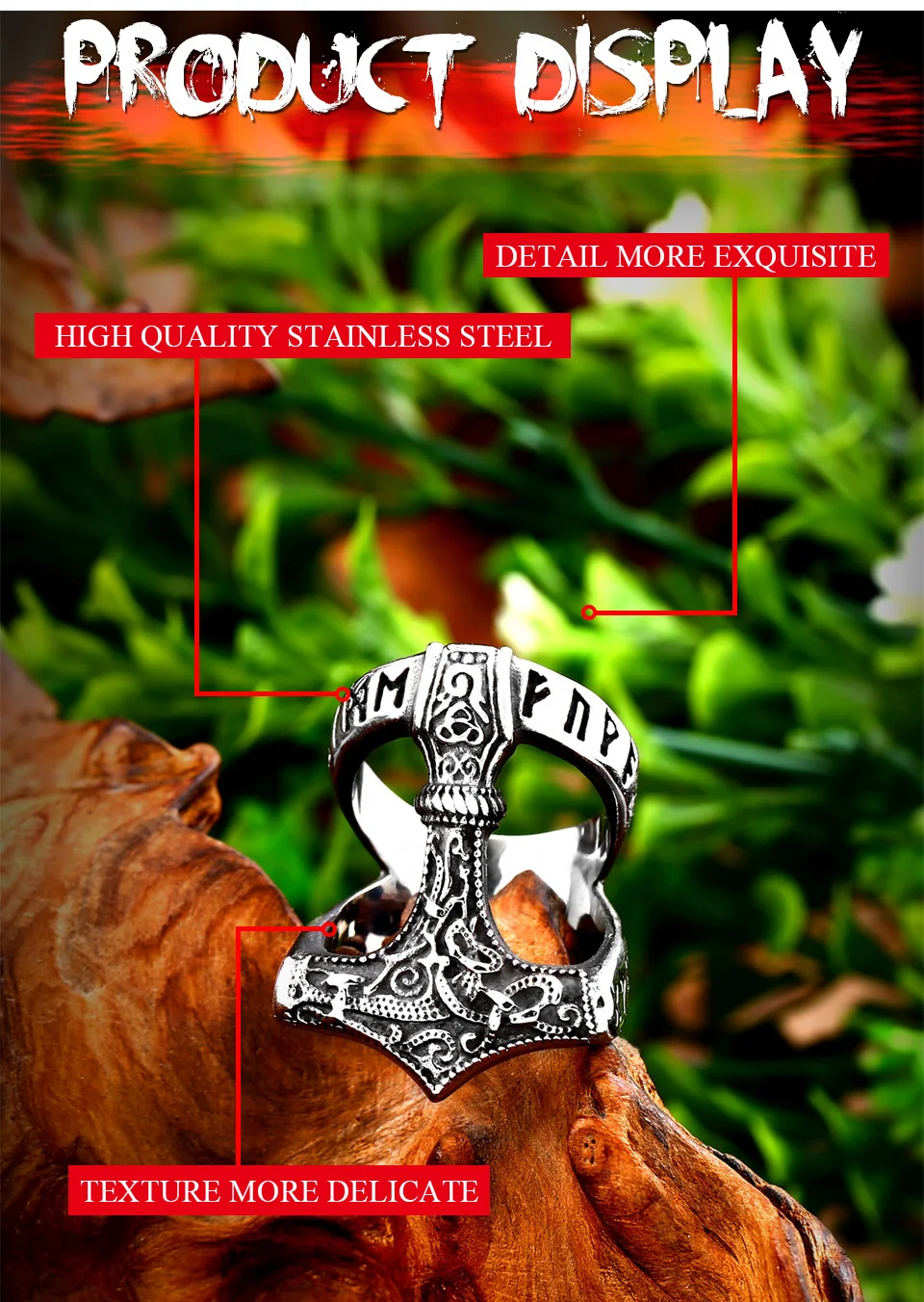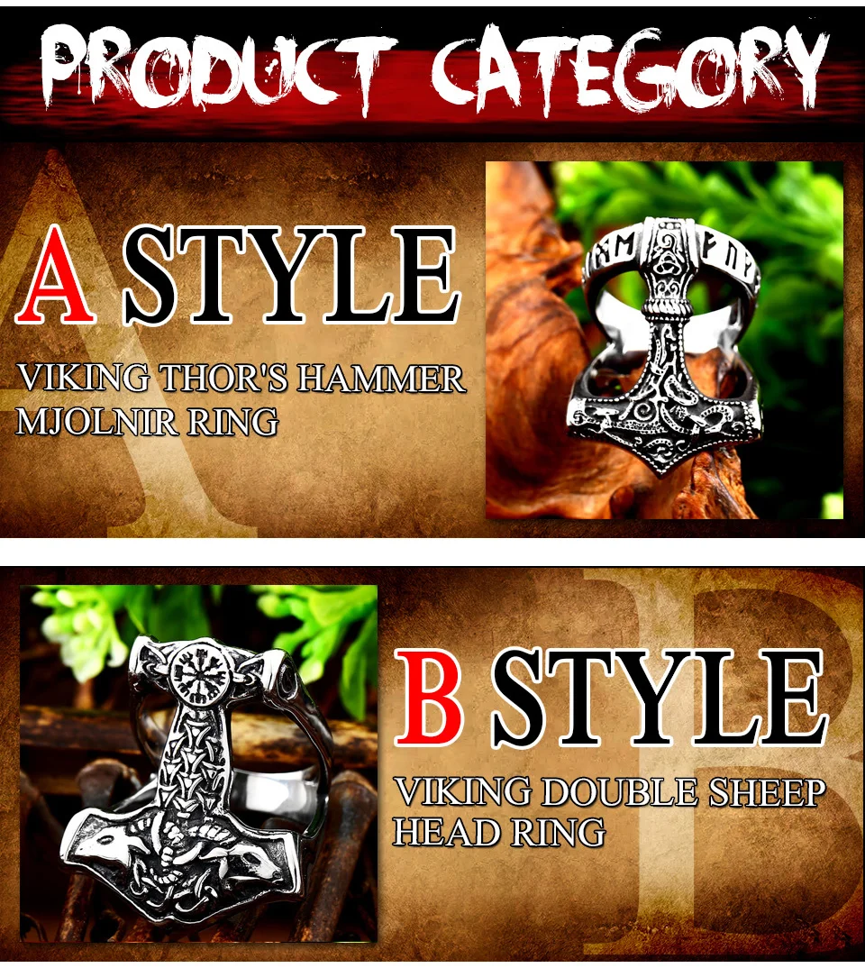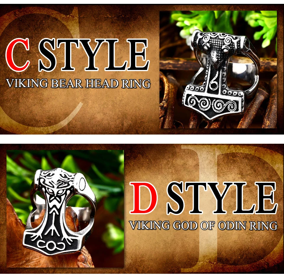 Мужское руническое кольцо Beier, кольцо амулет в нос викинга из нержавеющей стали 316L, в скандинавском стиле, Odin thor's Молот Мьёльнир, LR567