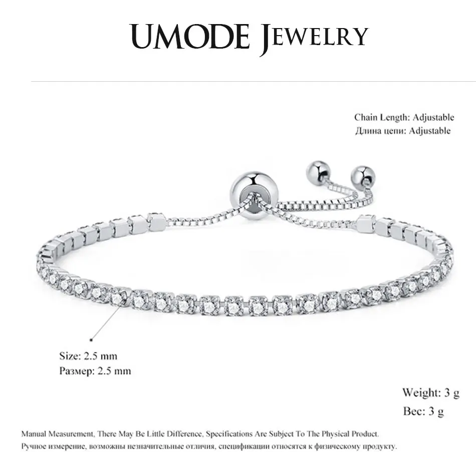 Браслет UMODE женский теннисный, 4 цвета, с фианитами, UB0124X