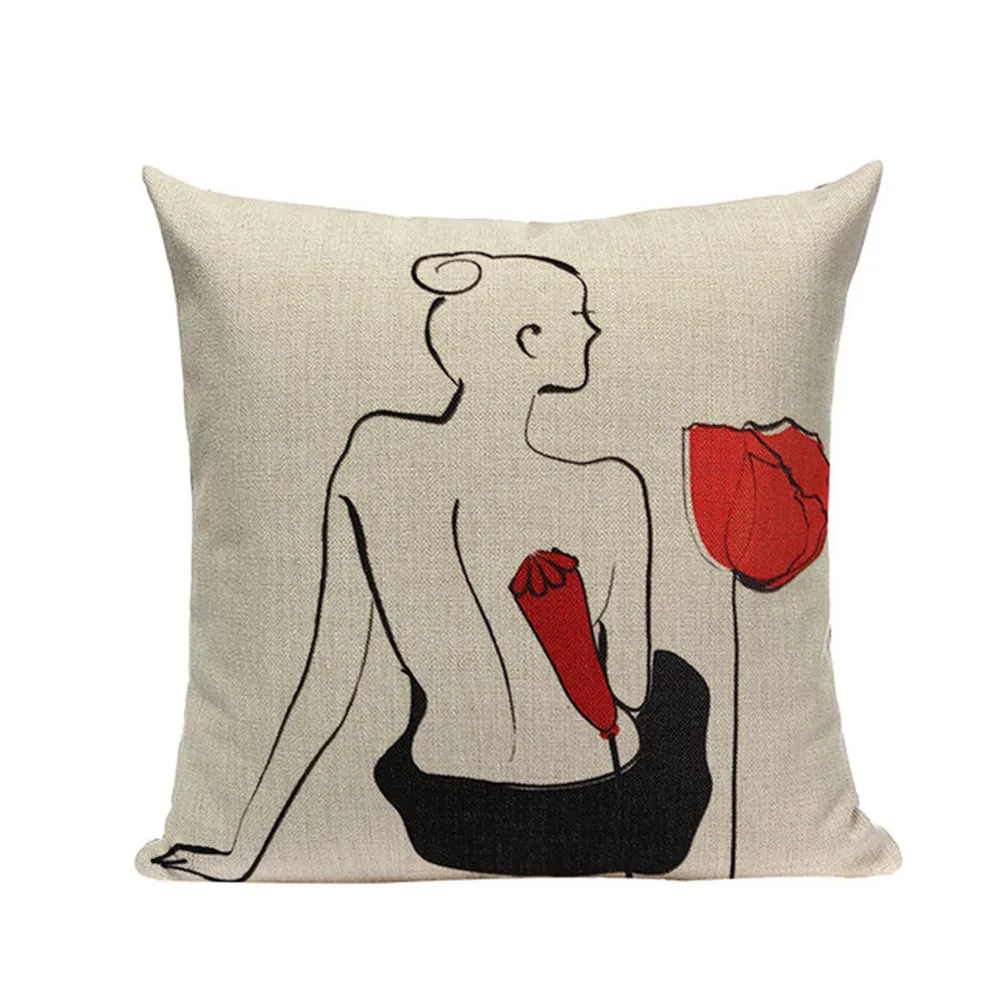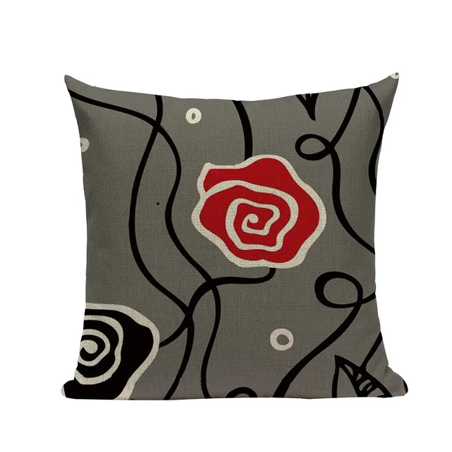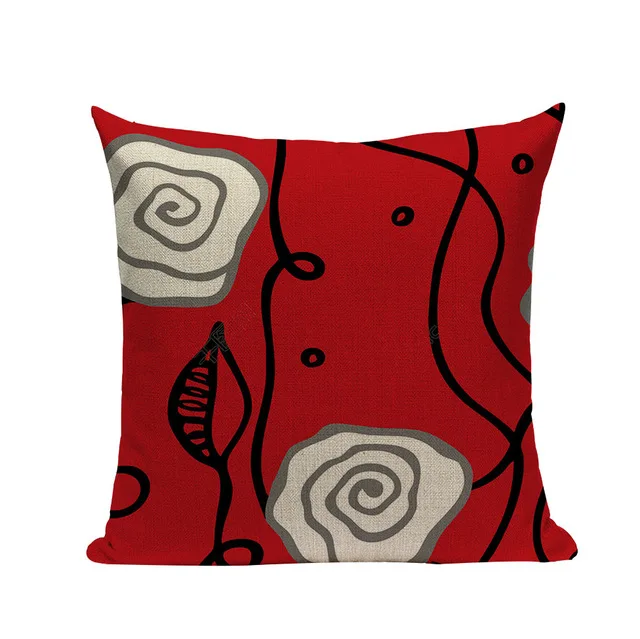 Декоративная креативная Подушка с красными и черными цветами, чехол для подушки, автомобильный диван, поясное сиденье, украшение для дивана, офисное кресло