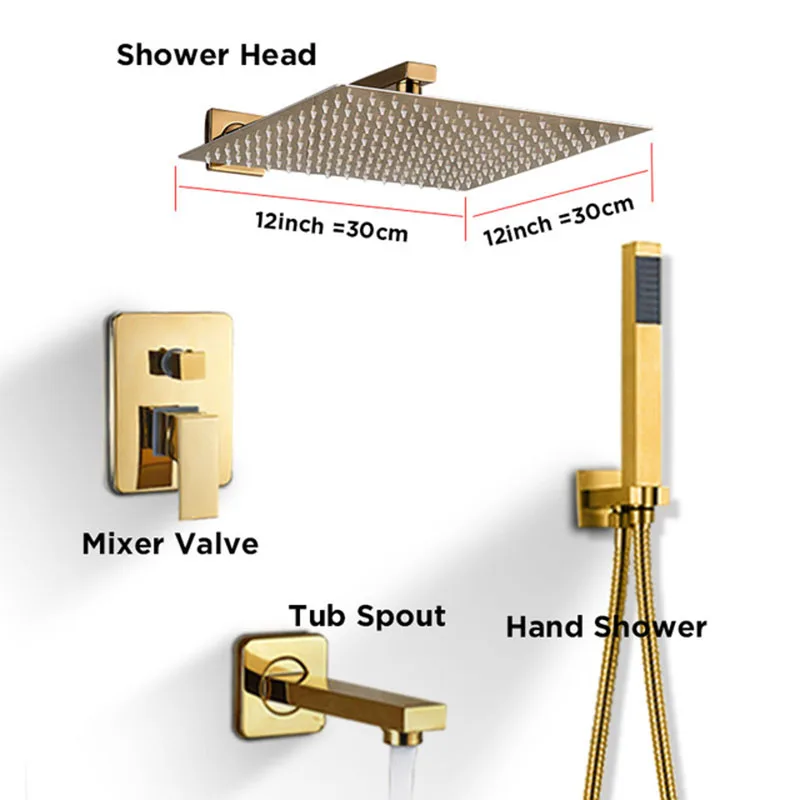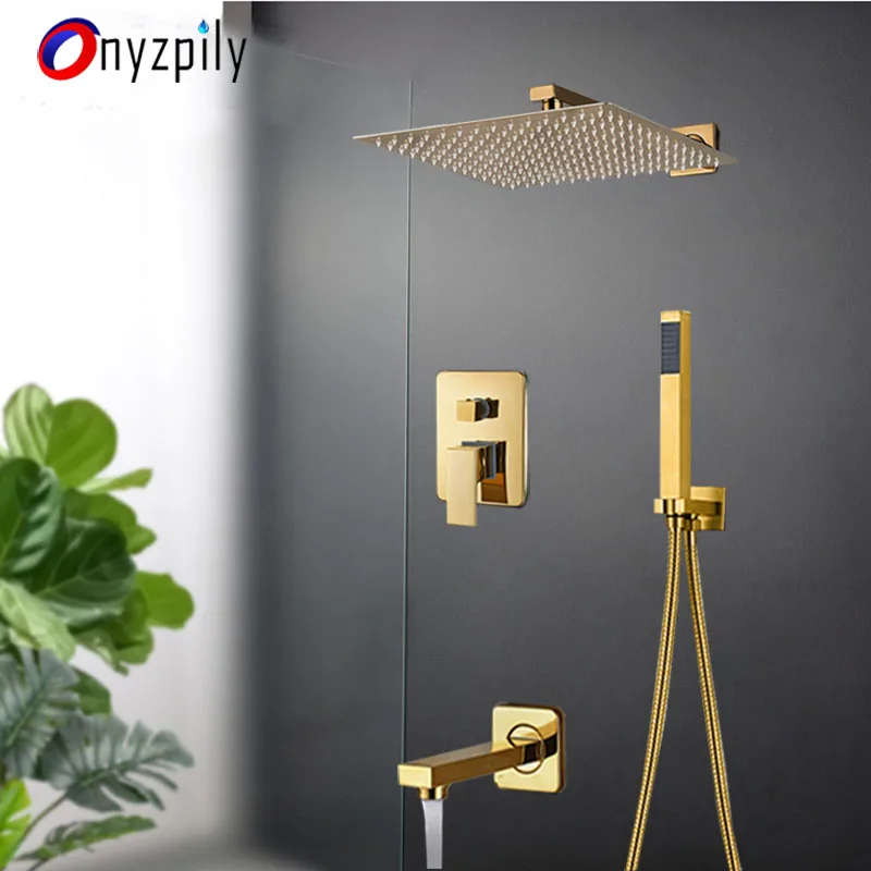 Смеситель для душа для ванной комнаты Onyzpily, золотой, 8 футов, 10 футов, 12 дюймов, смеситель для душа, насадка для душа из нержавеющей стали, настенное крепление с ручной ванной