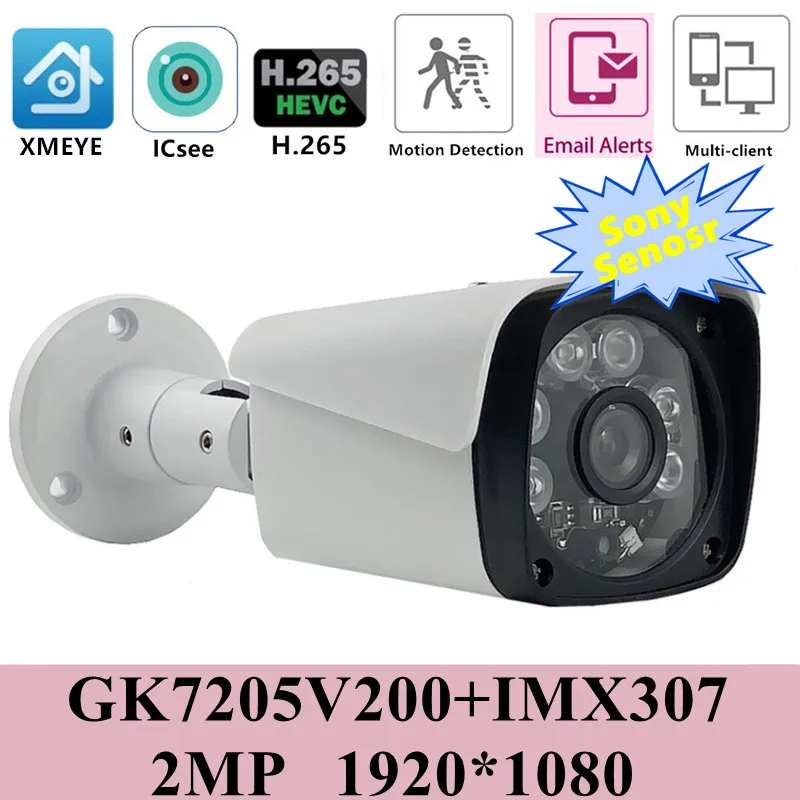 Наружная цилиндрическая IP-камера Sony IMX307 + GK7205V200 H.265 2 МП IP66 Водонепроницаемая Onvif с низким освещением и функцией Обнаружения Движения 48 в PoE