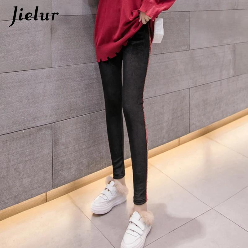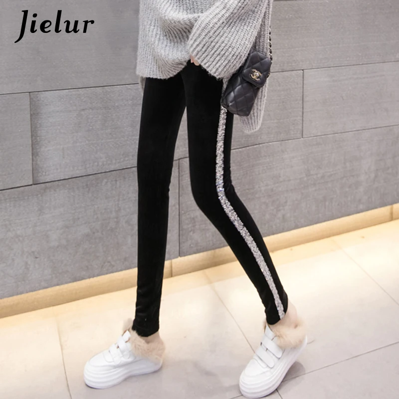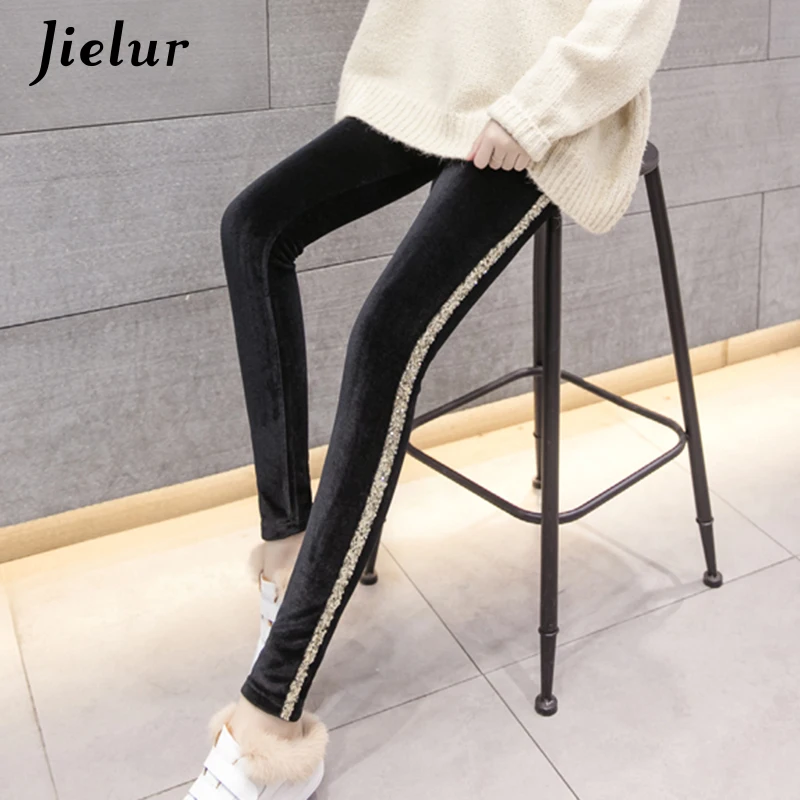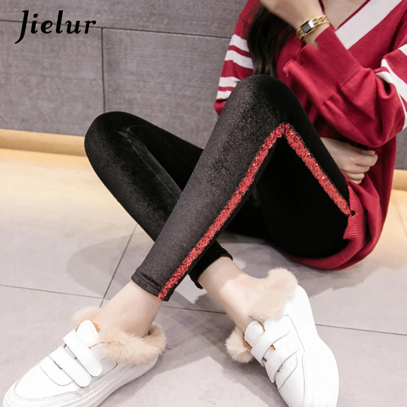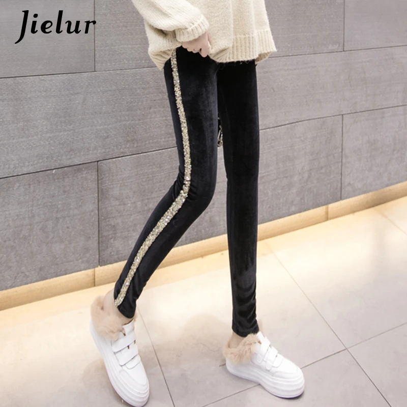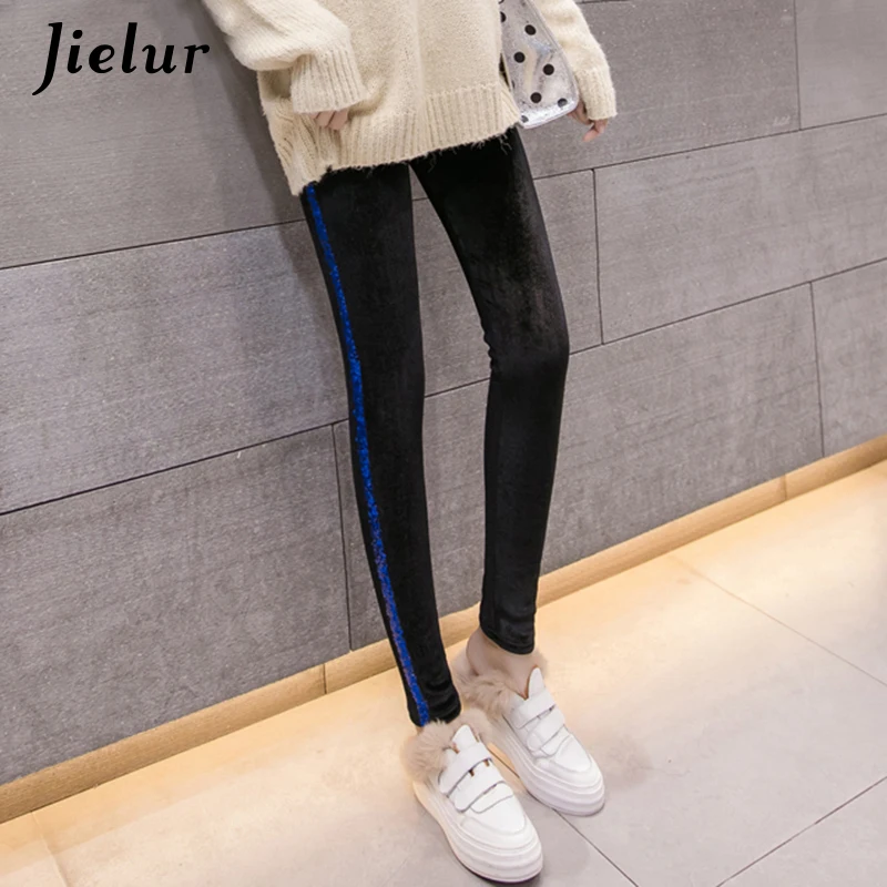 Женские леггинсы с высокой талией Jielur, тонкие велюровые леггинсы 4 цветов с полосками по бокам и блестками, осень 2021