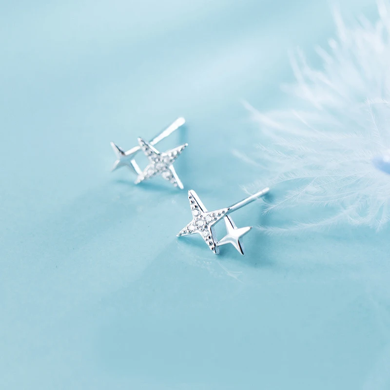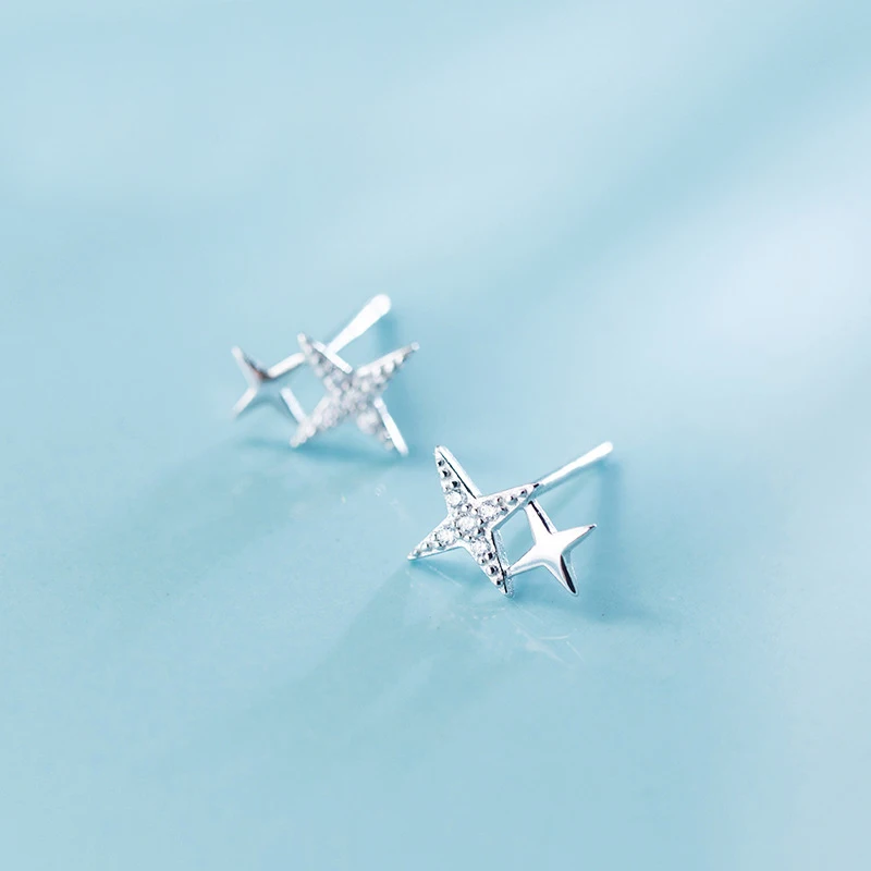 MloveAcc, 100% Стерлинговое Серебро 925 пробы, Женские Ювелирные изделия, модные милые серьги-гвоздики с фианитами и звездами, подарок для девочек, для женщин
