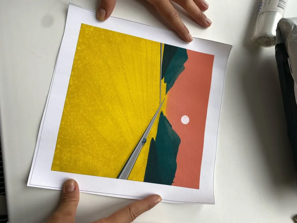 Картина на холсте, современное здание, красочное визуальное воздейс...