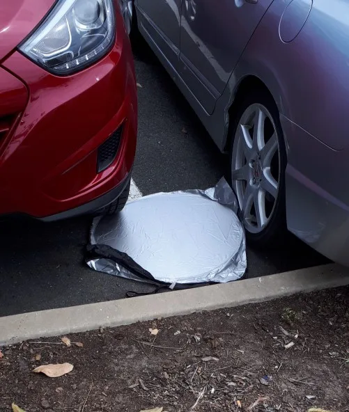 Наш автомобильный солнцезащитный козырек настолько компактный, что его можно взять в любом месте. Не путешествуйте без меня