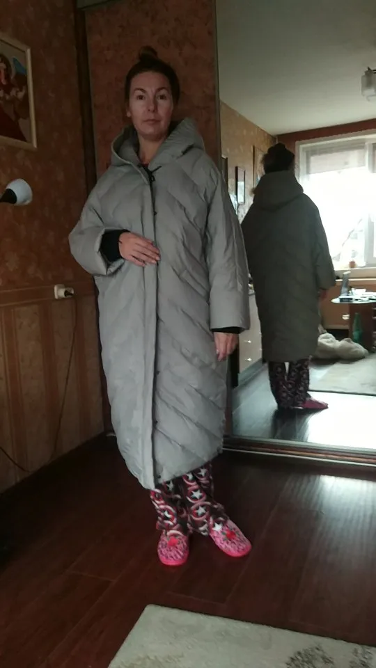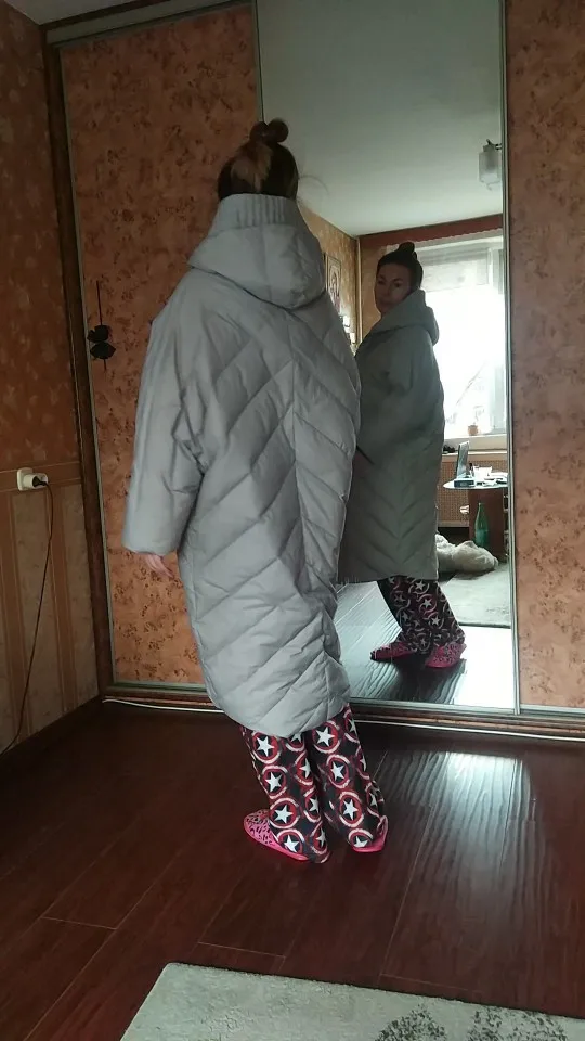 Не знаю каким образом люди оставляли положительные отзывы, так как крой отличается от того, что в описании. Уточнила в продавца рост модели, у меня такой же и вот как это смотрится в реале! Просила возместить хотя бы часть средств, так как пришлось его перешивать, в итоге отказ. Рукова очень длинные, закрывают полностью кисть с пальцами, а сам пуховик короче, чем надо, чуть ниже колена. Руки в нём вообще не поднимаются, если поднять руки, то и вся куртка поднимется наверх, так скроено. Ширина куртки тоже заметно уже пропорционально, чем на фото продавца. Так что подумайте, прежде чем брать.