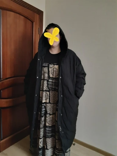 в среднем польто нормальное, но не могу сказать что это кокон. ткань не такая как обычно бывает у пальто( скользкая с блеском) ,а слегка шершавая и шелестящая, запаха нет, размер соответствует, параметры ог110, об138 рост 170см, длина до середины икры. капюшон глубокий, широкие манжеты на рукаве, замок простенький, пальто тонкое но не продувается и тёплое. в принципе довольна, носить буду. с продавцом не общалась. товар отправили спустя 5 дней, доставка до ставрополя 2 недели.