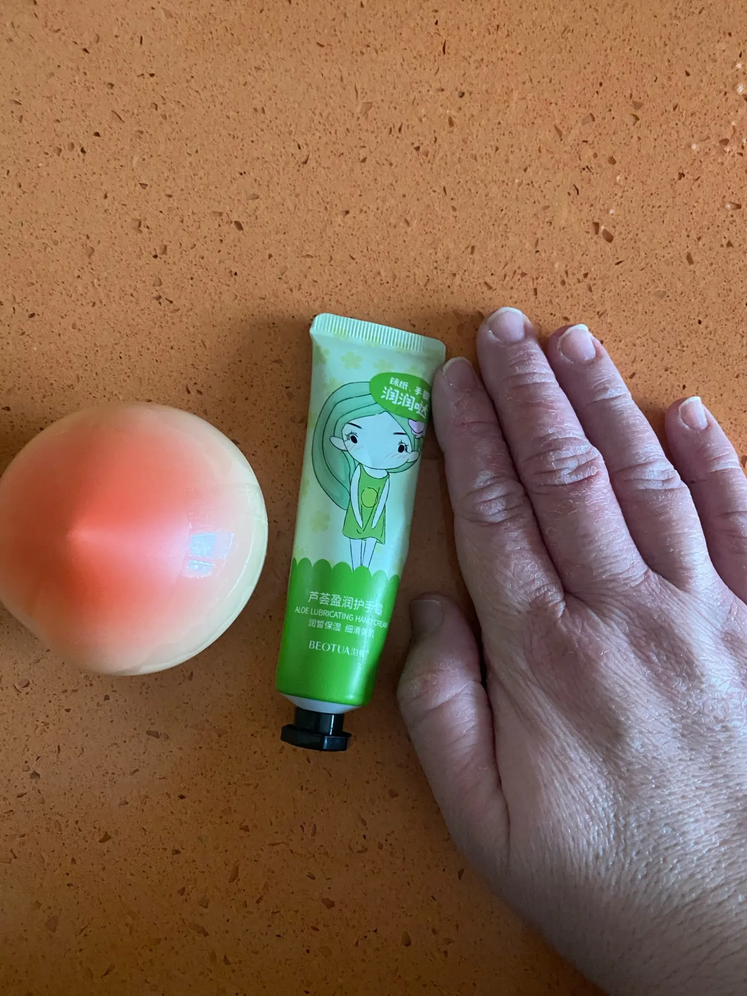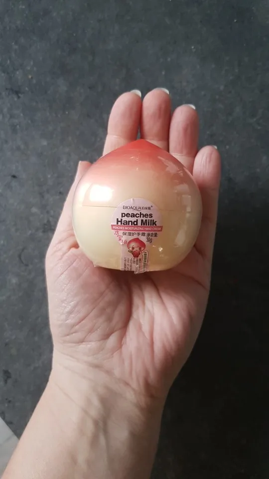 Упаковка у крема хлипенькая, из дешевого пластика, но смотрится мило. Сам крем имеет очень нежный и приятный запах персика, приятен в использовании, хорошо питает кожу рук.
