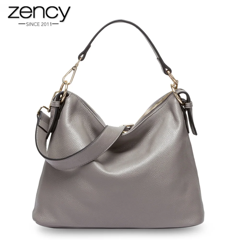 Сумка Zency женская из 100% натуральной кожи, модный серый саквояж на плечо, мессенджер, повседневный тоут через плечо