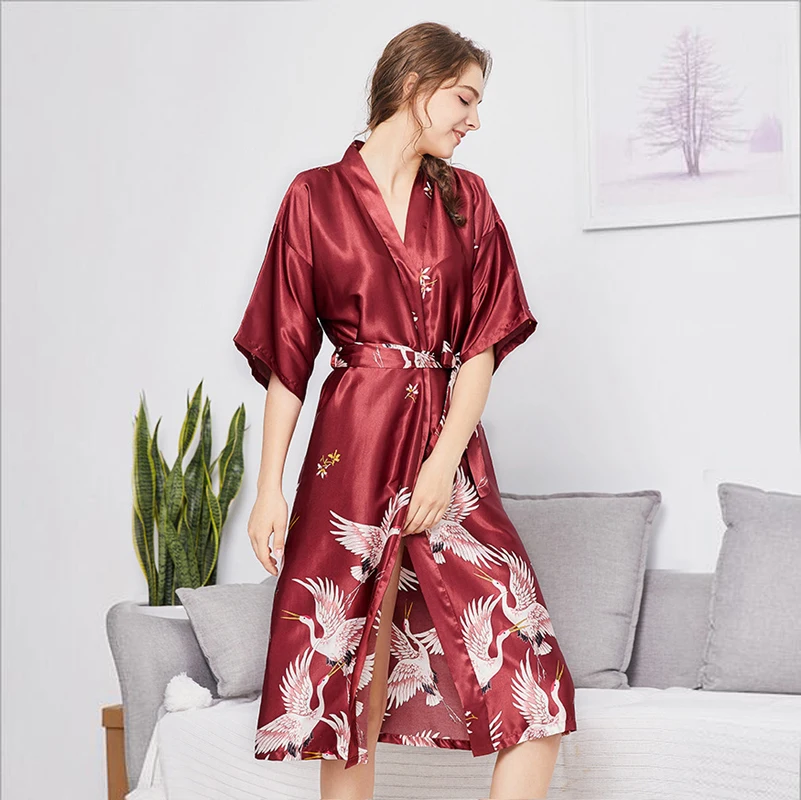 НовинкаКитайский женский халат банное платье кимоно Ночная рубашка Цветок Размер M L XL XXL XXXL