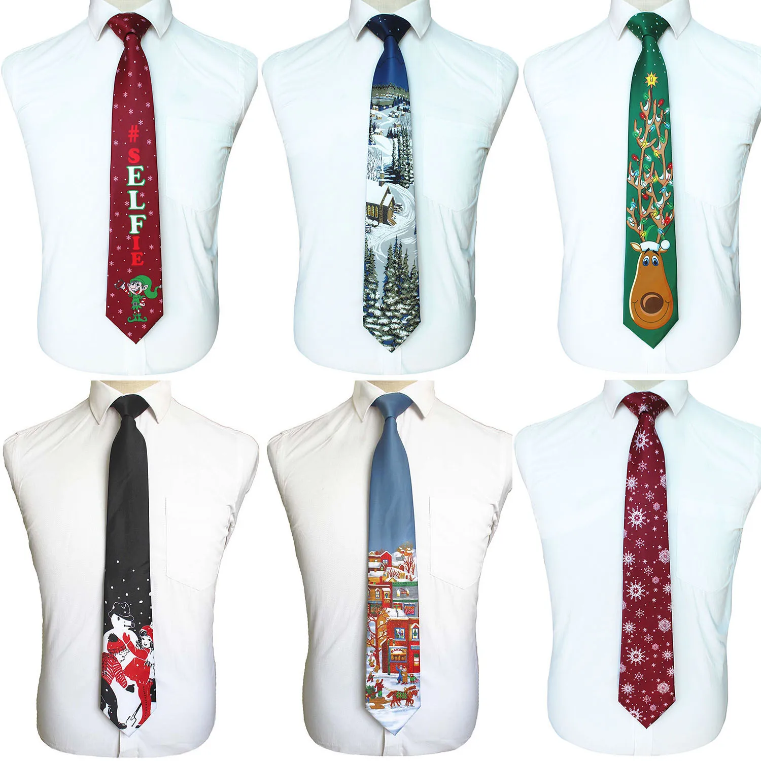 GUSLESON качественный Рождественский галстук с принтом Мужская мода 9 см шелковые галстуки Helloween праздничный галстук искусственный галстук подарок