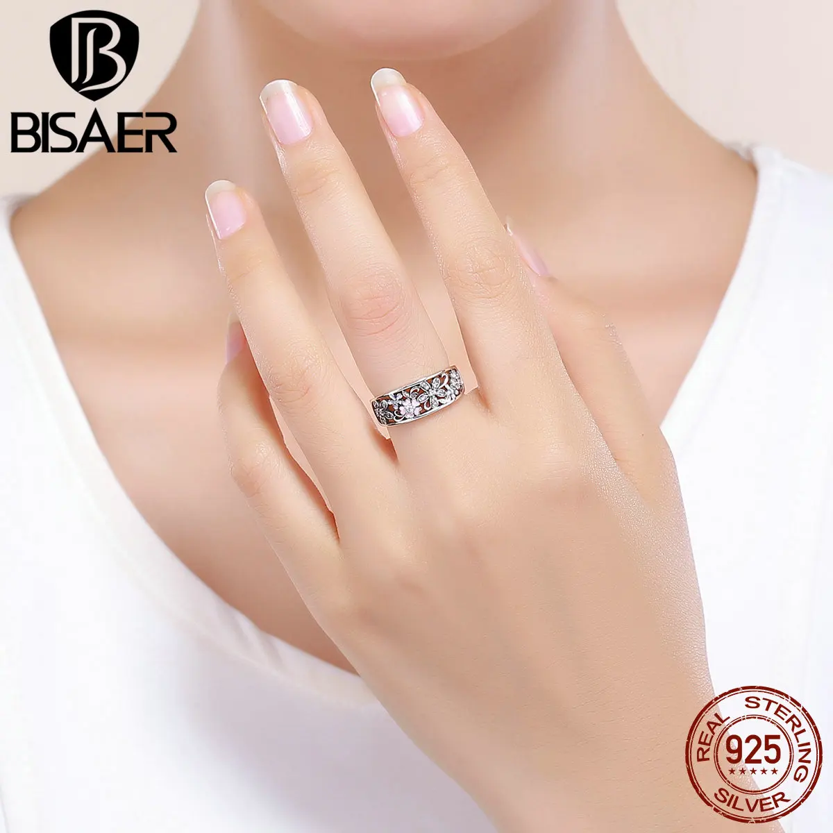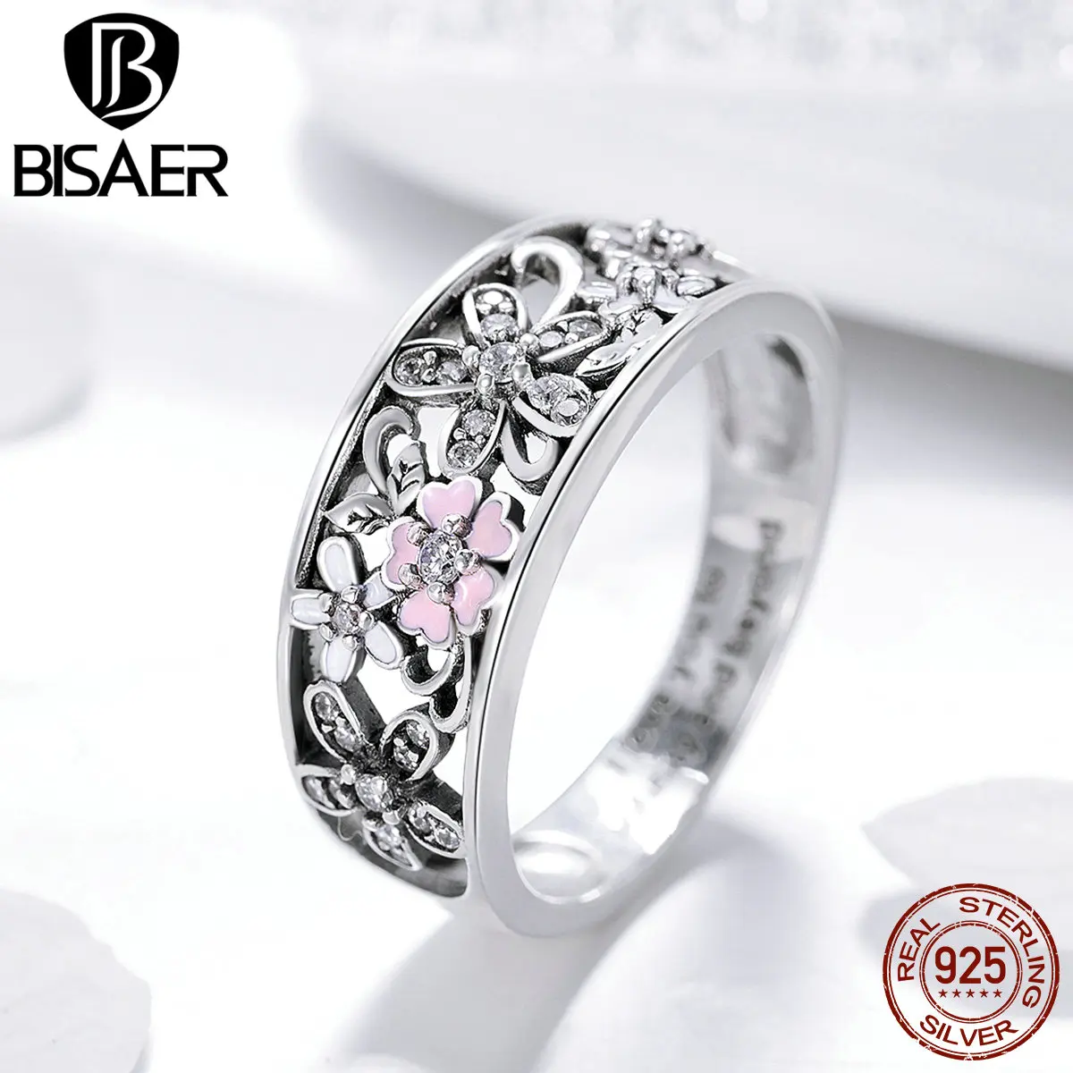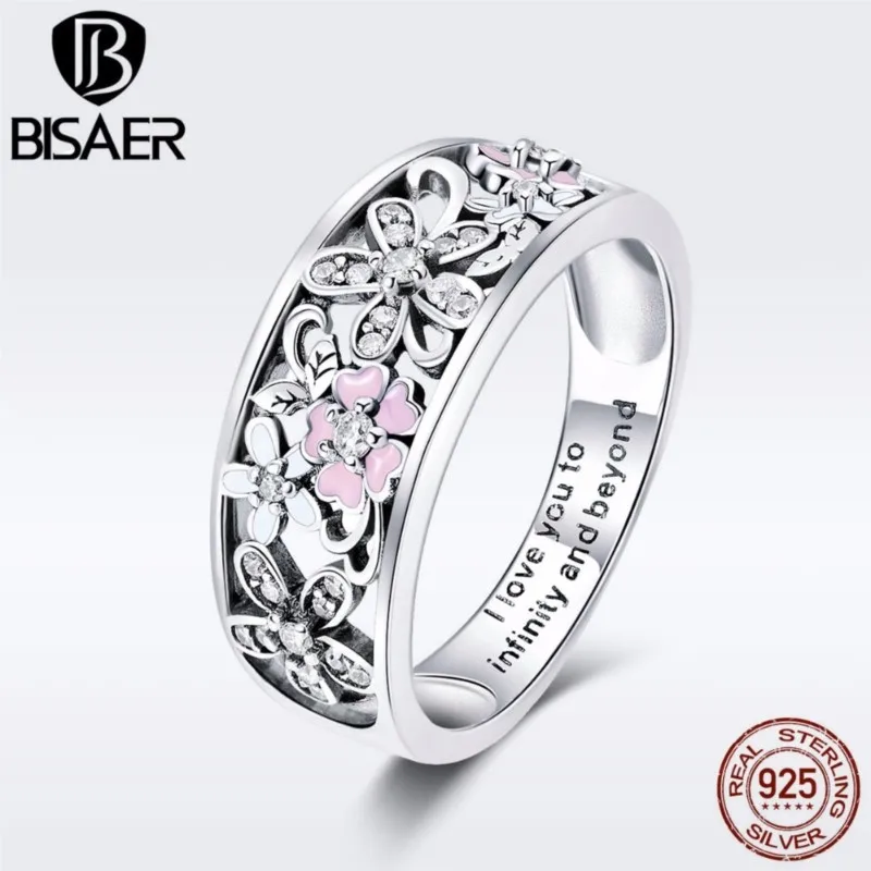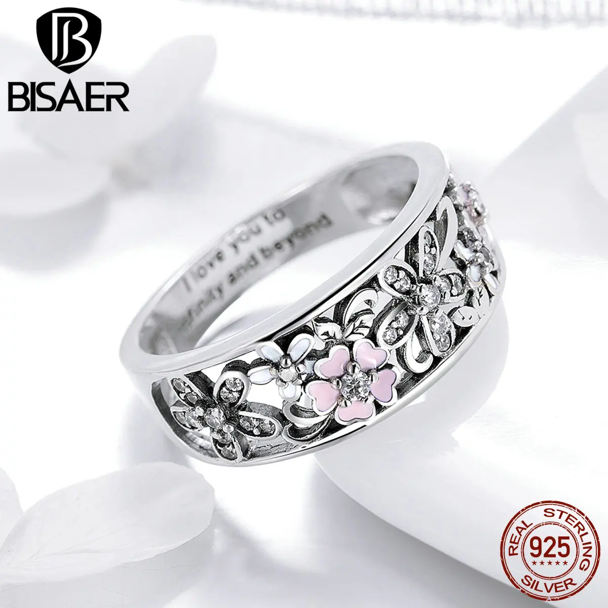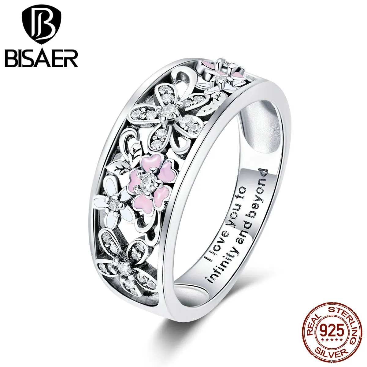 Женское кольцо с ромашками BISAER, серебряное кольцо из серебра 925 пробы с надписью I Love You для коктейлей и свадьбы, ECR390