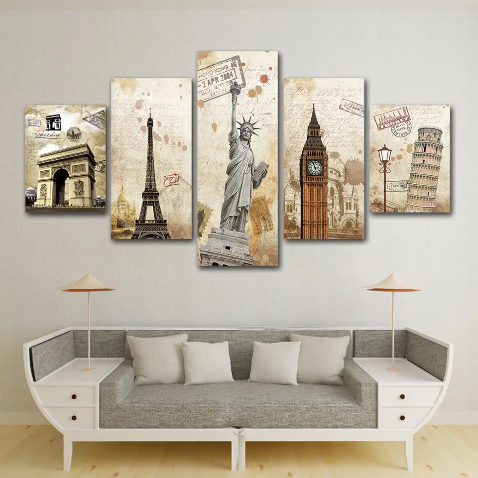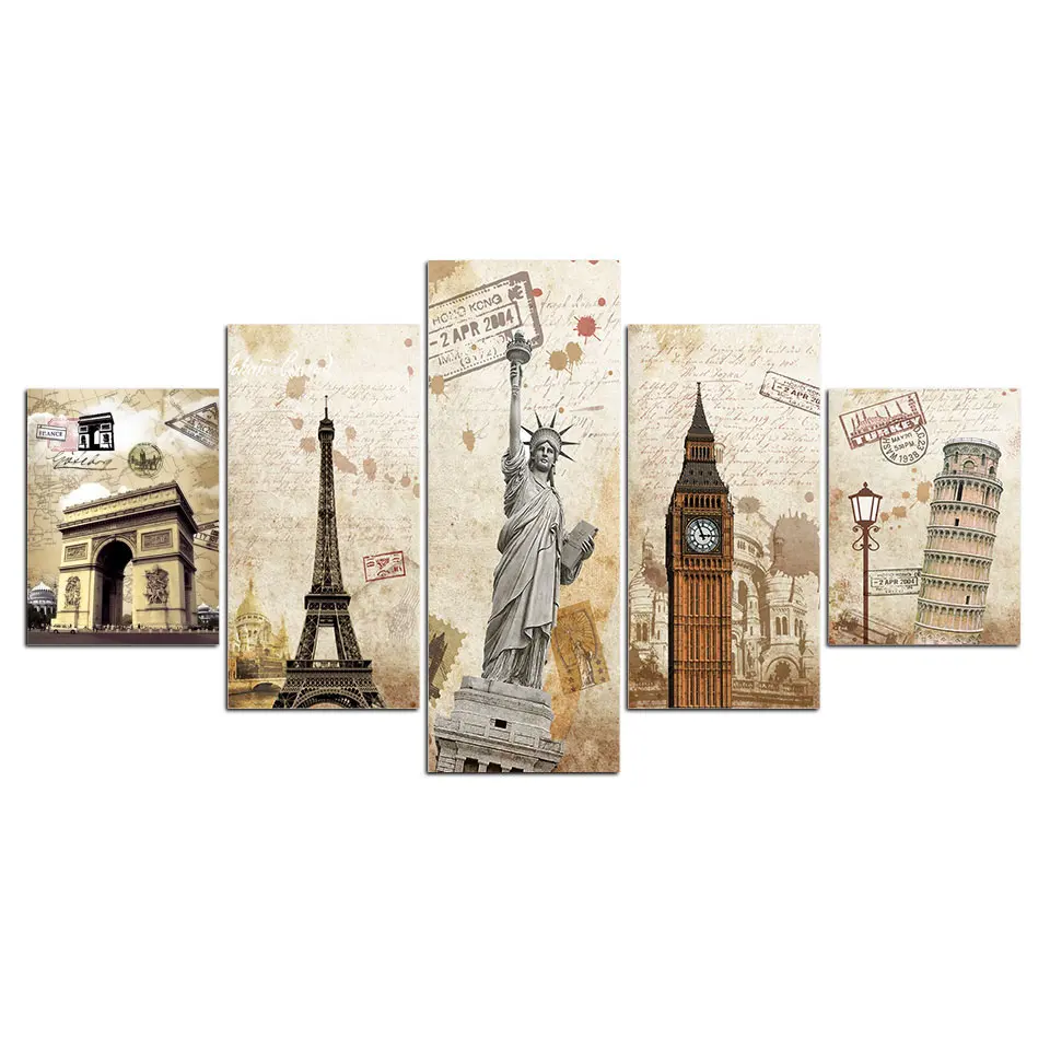 HD печать 5 шт. Холст Искусство Винтаж знаковое здание холст печать Биг Бен бесплатно девушка статуя плакат с башней для украшения стен