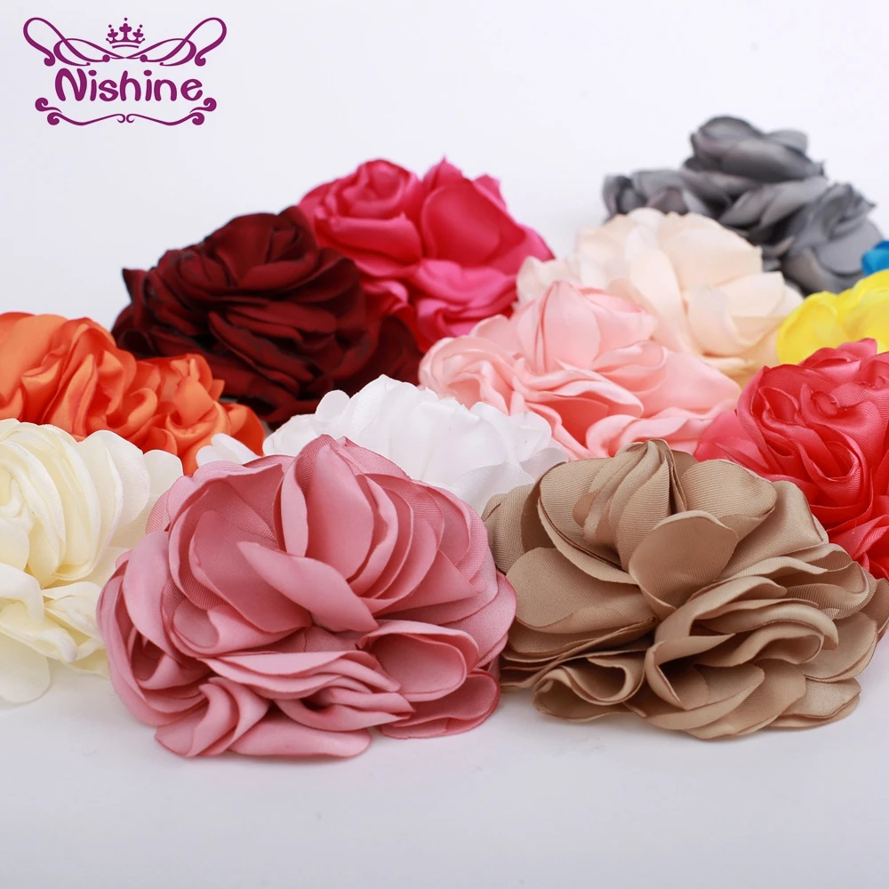 Многослойные Сатиновые зажимы для волос Nishine 20 шт.лот 3,2 дюймов, повязка на голову сделай сам с цветами, тканевые аксессуары для волос