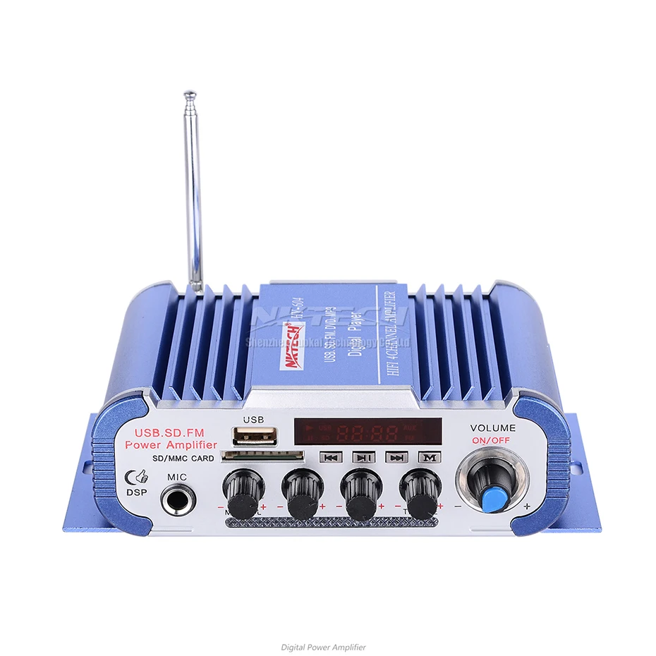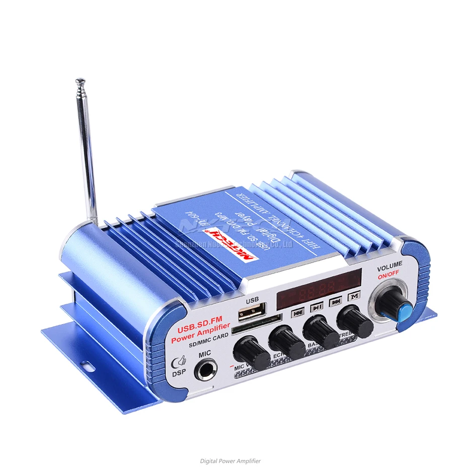 Особенности:С воспроизведением USB/SD, входом для микрофона, функцией реверберации караоке, входом 12 В постоянного тока.Может воспроизводить U диск SD/MMC карты для музыки и FM стерео радио, поддержка MP3 музыкального формата (USB + SD + FM).Отборные мощные четырехканальные интегральные схемы профессионального усилителя мощности, минимальные искажения, высокая мощность.Предварительно Профессиональный Уровень входа операционный усилитель IC для проектирования цепи, звук, прозрачный, яркий.Фильтрация и схема питания большой емкости.Шаблон звукового поля DSP из четырех, выход главного канала буксировки.Поддерживает воспроизведение FM-радио (FM: 87,5-108 МГц).С функцией воспроизведения USB/SD карт.Усилитель мощности, отвечающий четырем реальным каналам на рынке, высокая мощность, что составляет более половины мощности одного и того же усилителя.С входным разъемом для iPod, MP3, CD /DVD-плеера.Пульт дистанционного управления сделает вашу работу более удобной на большом расстоянии. Характеристики: Реверберация караоке 6,5 мм интерфейс микрофона.
