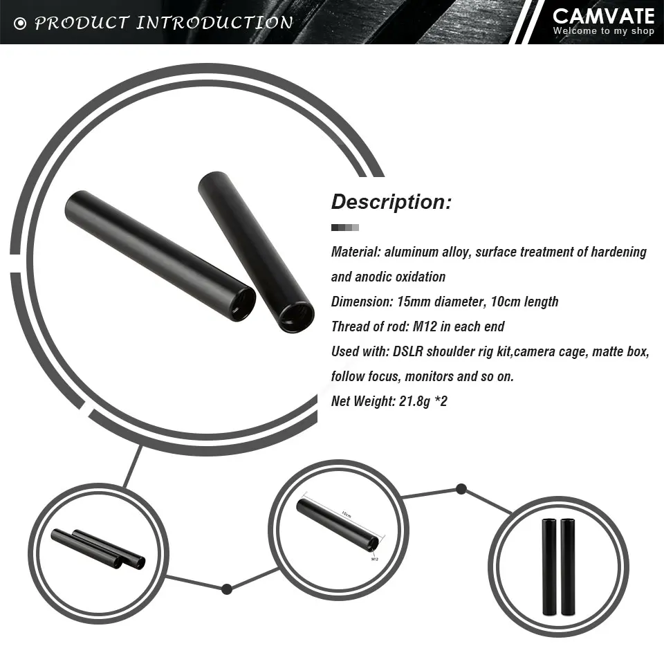 Штатив для камеры CAMVATE, стандартный стержень из алюминиевого сплава 15 мм, резьба M12, длина 3,94 дюйма10 см, для систем поддержки цифровой зеркальной камеры, 2 шт.