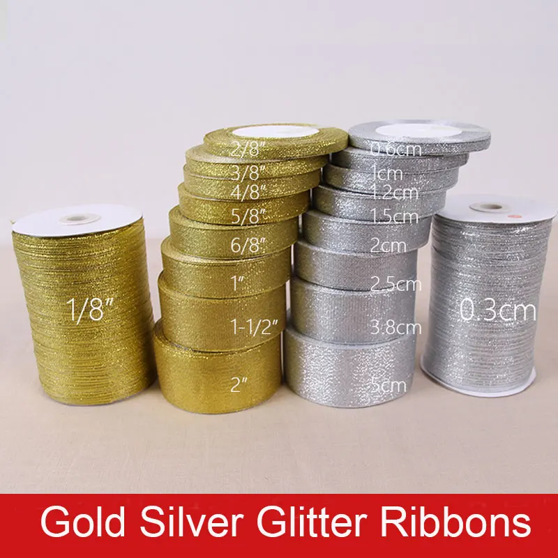 Ленты с блестками золотистыесеребристые, 6101520254050 мм, упаковка для свадебного подарка