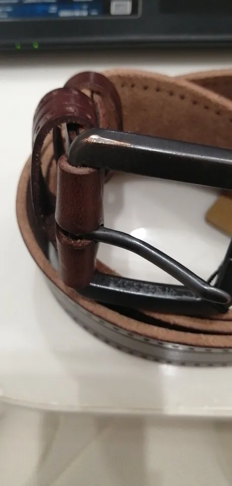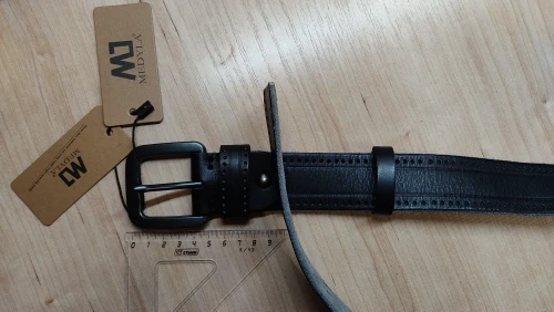 Заказ пришел быстро, ремень выглядит и пахнет как кожаный. Впервые вижу ремень у которого конец отрезан прямо, а не углом, как обычно. Придется подрезать.