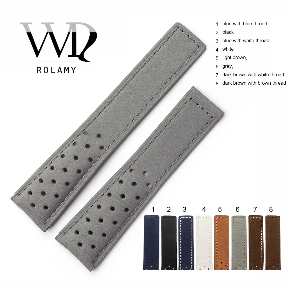 Ремешок для часов Rolamy 20 22 мм, натуральная телячья кожа, серый замшевый ремешок, винтажный сменный ремешок для наручных часов, кожаный ремешок для часов, Новинка