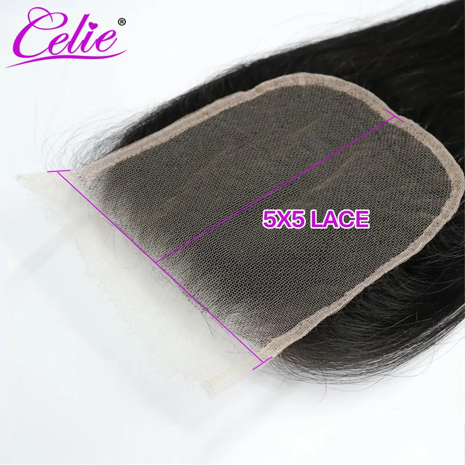Волосы Celie 150% 5x5, кружевное закрытие, объемная волна, свободная/средняя часть, 100% бразильские человеческие волосы Remy, натуральные черные волосы