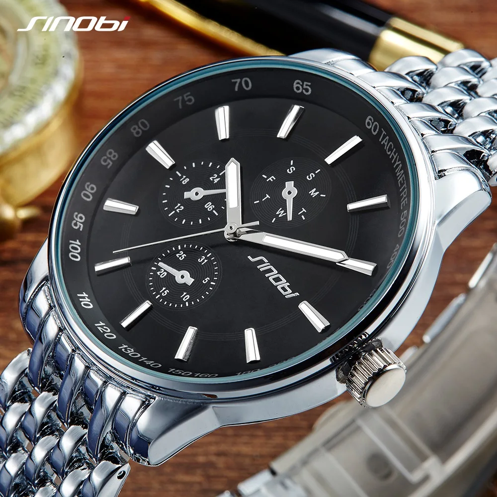 Часы SINOBI Мужские наручные кварцевые, брендовые Роскошные с металлическим ремешком, подарок s, со скидкой