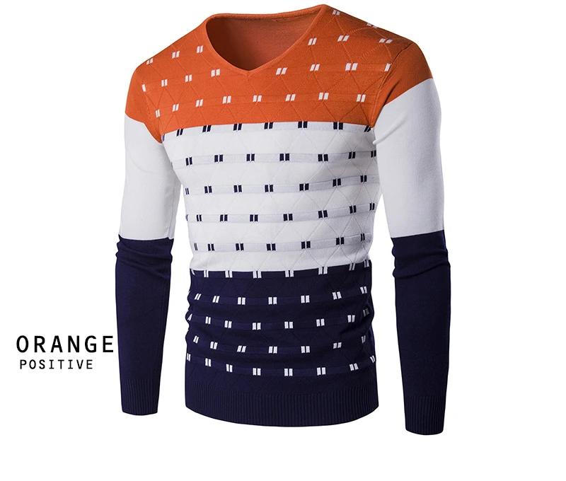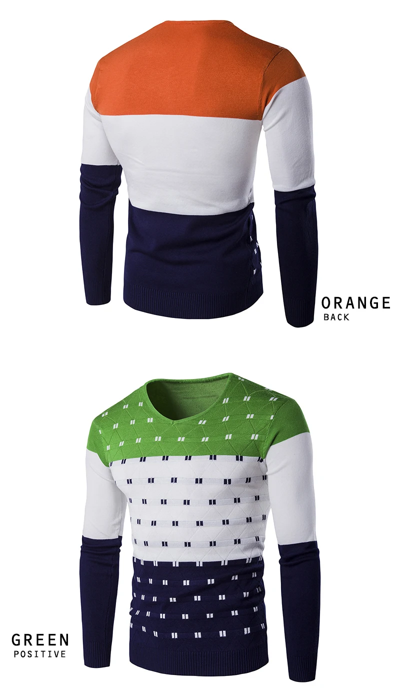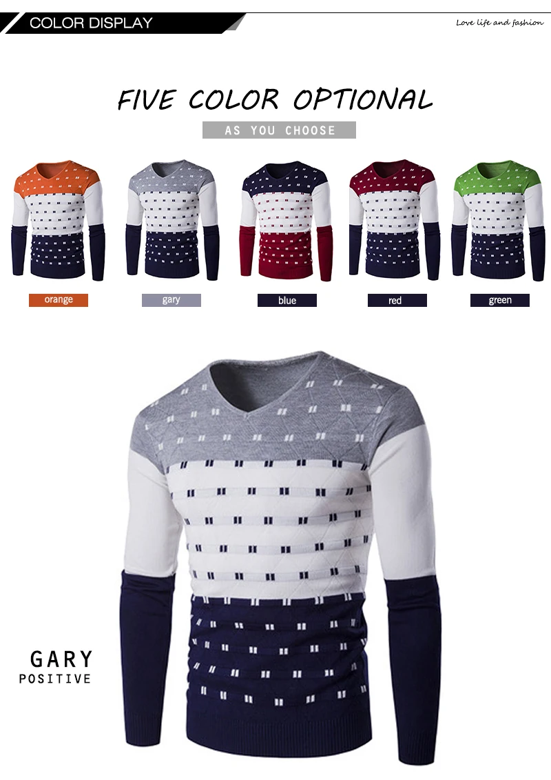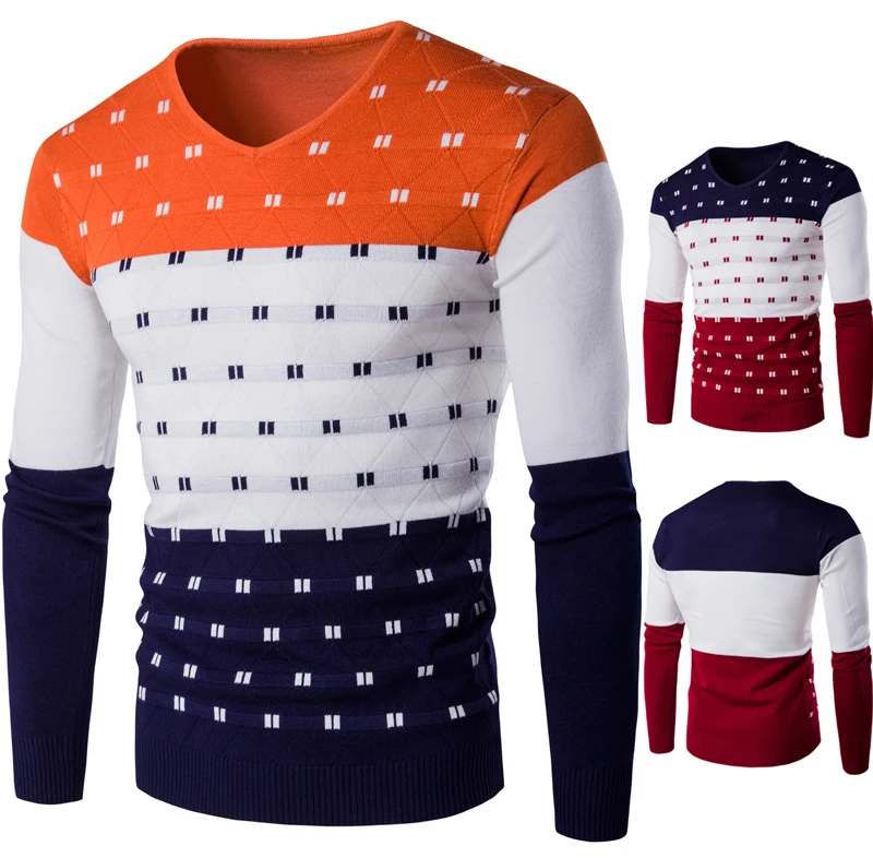 Мужской свитер в стиле пэчворк на весну и осень, тонкий хлопковый тонкий пуловер с V-образным вырезом, простой теплый свитер, мужская одежда