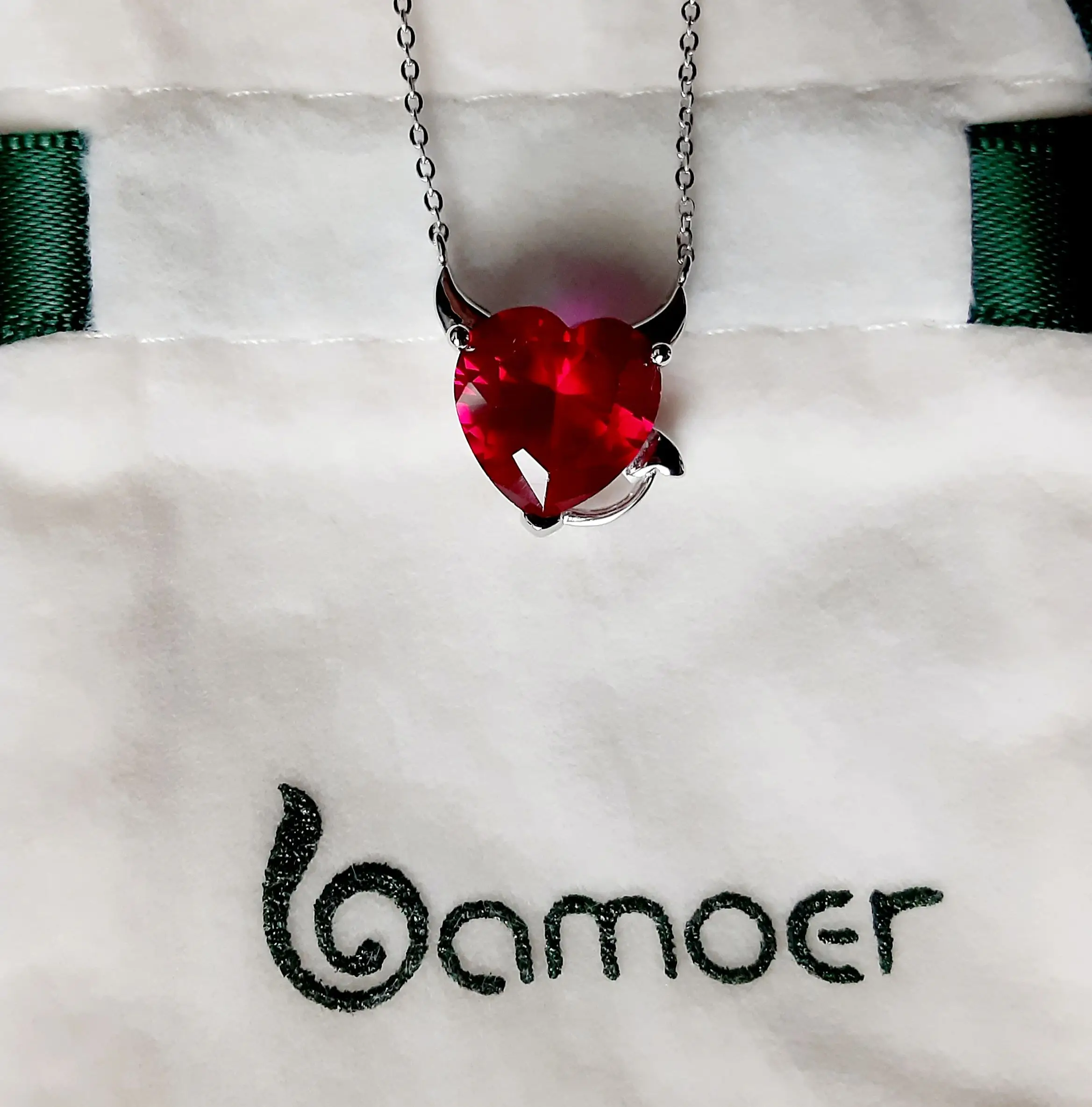 Ожерелье женское из серебра 100% пробы, с красными крыльями дьявола и фианитами