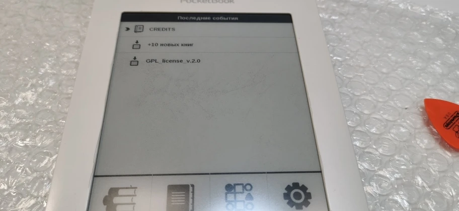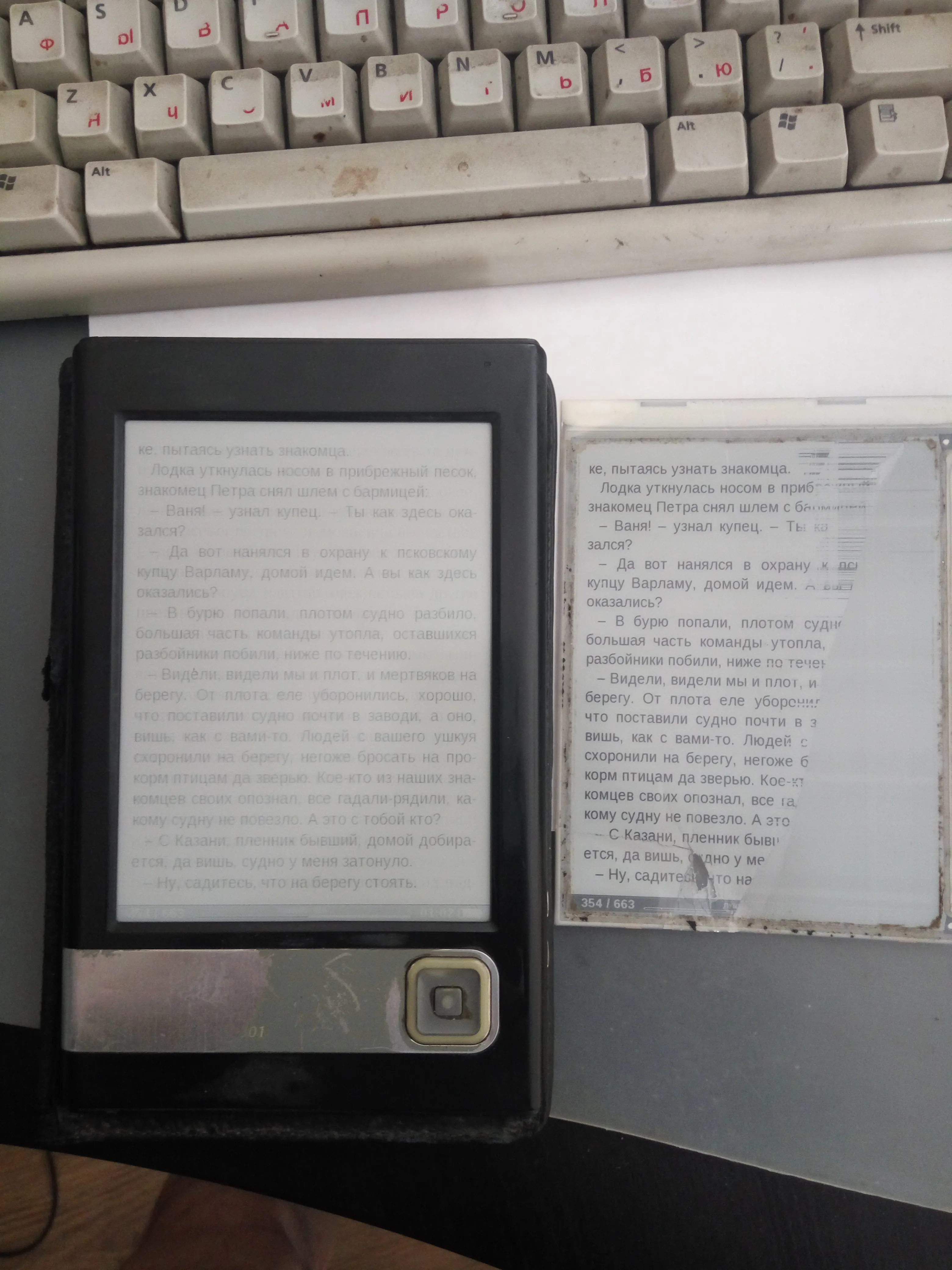 Экран посредственный. На стекле царапины, отколот угол, но работает. Судя по всему, его по гарантии сняли с Kindle, по причине деградации экрана.
