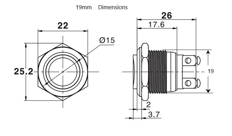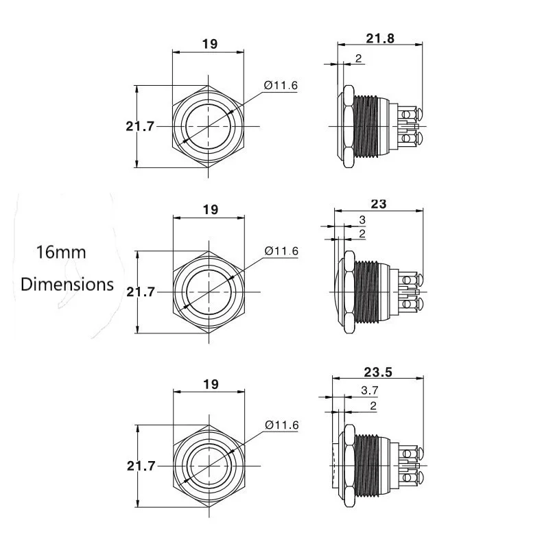 Металлический толчок Водонепроницаемая кнопка переключателя IP65 самостоятельное окисление моментальная Перезагрузка 16 мм19 мм22 мм красный синий черный зеленый желтый цвет 1НО