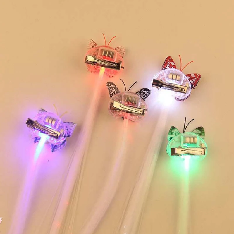 Яркие парики Rave, светящиеся, со светодиодной подсветкой, в виде бабочки, булочки, заколки для волос, декоративные, светящиеся, для нового года, рождественской вечеринки