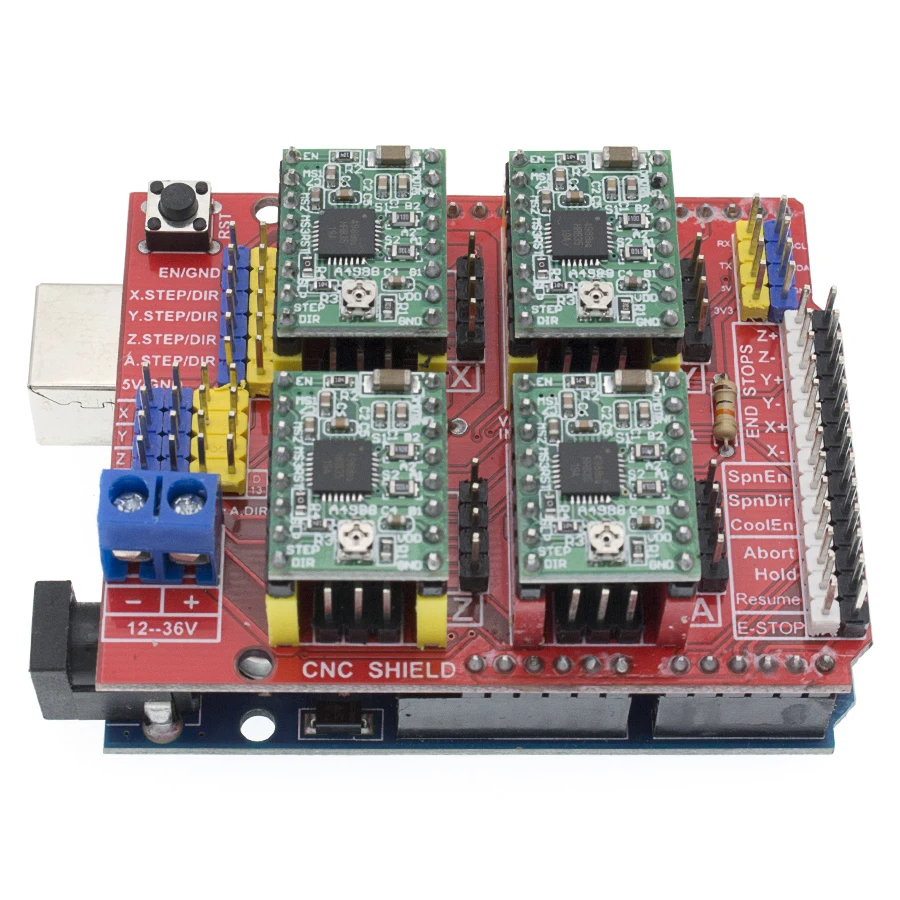 Комплект сделай сам, плата расширения для ЧПУ для 3D-принтера + Драйвер шагового двигателя A4988 4 x с радиатором + UNO R3 DIY