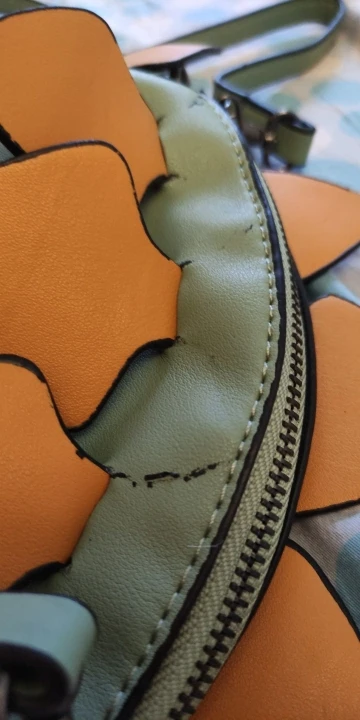 Очень хорошая сумочка, резина не высохла, когда сумку транспортироввли и местами она отпечаталась на сумке. Сшито хорошо, насколько я в этом разбираюсь... Получается, что невысохшая краска — единственный минус, который расстроил меня.