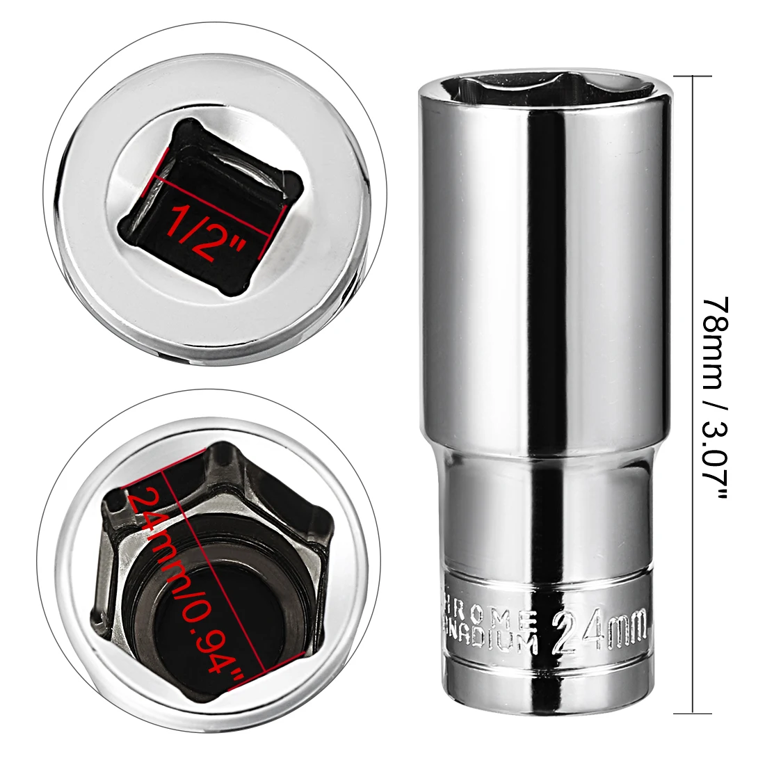 1 шт. 12 дюйма Привод глубокая розетка метрические Cr-V ручные инструменты 6-Point 8-24 мм 78 мм длина для DIY ручной инструмент для ремонта