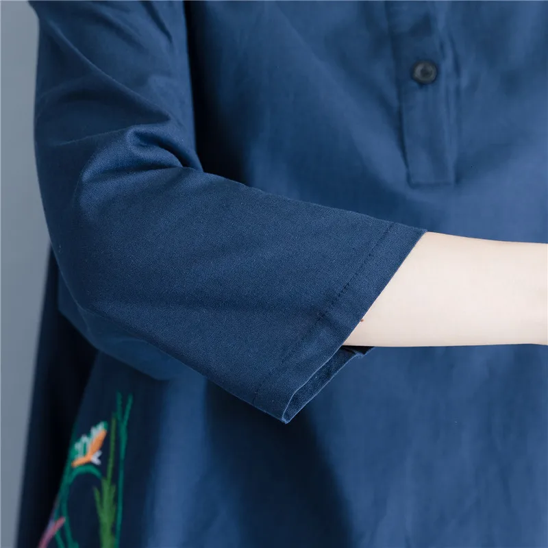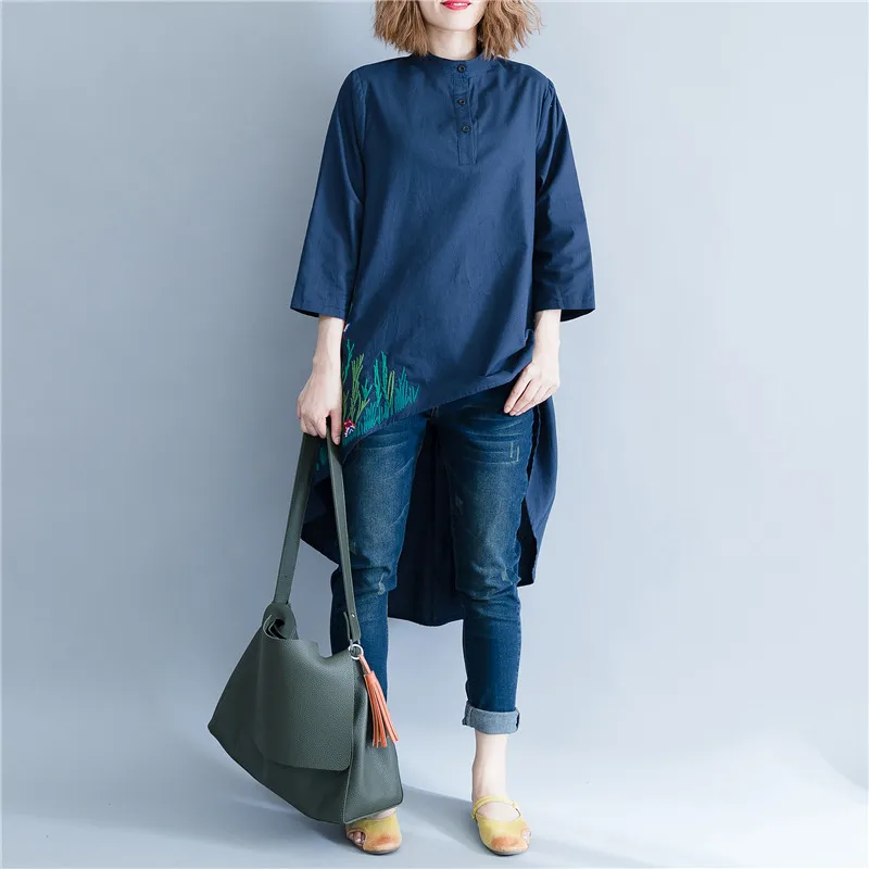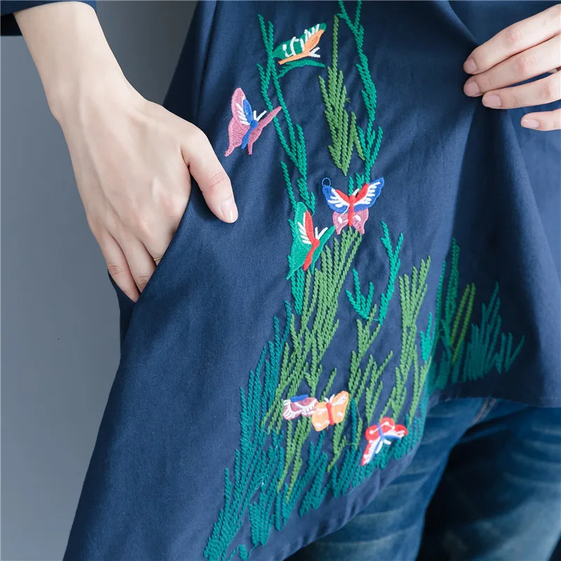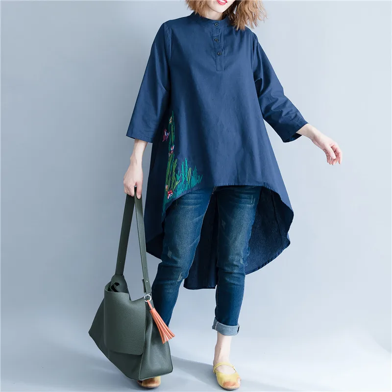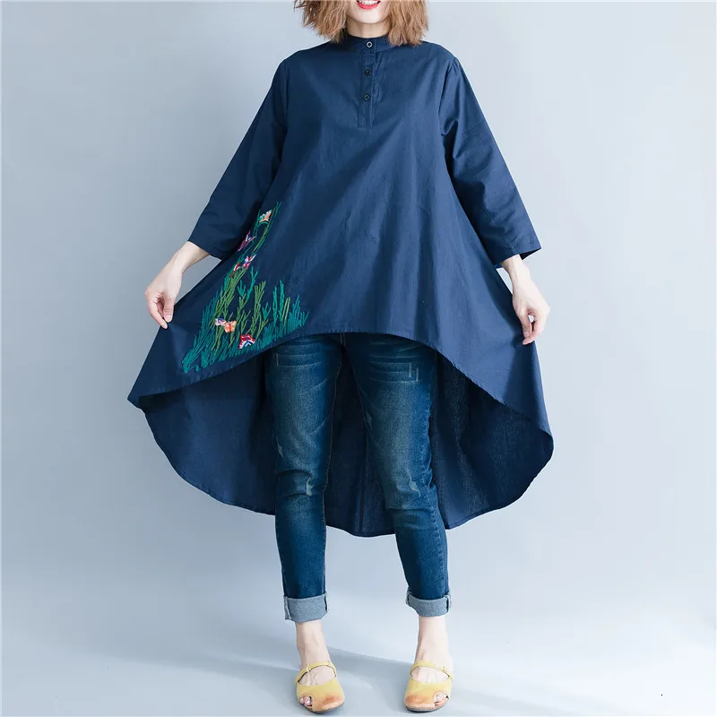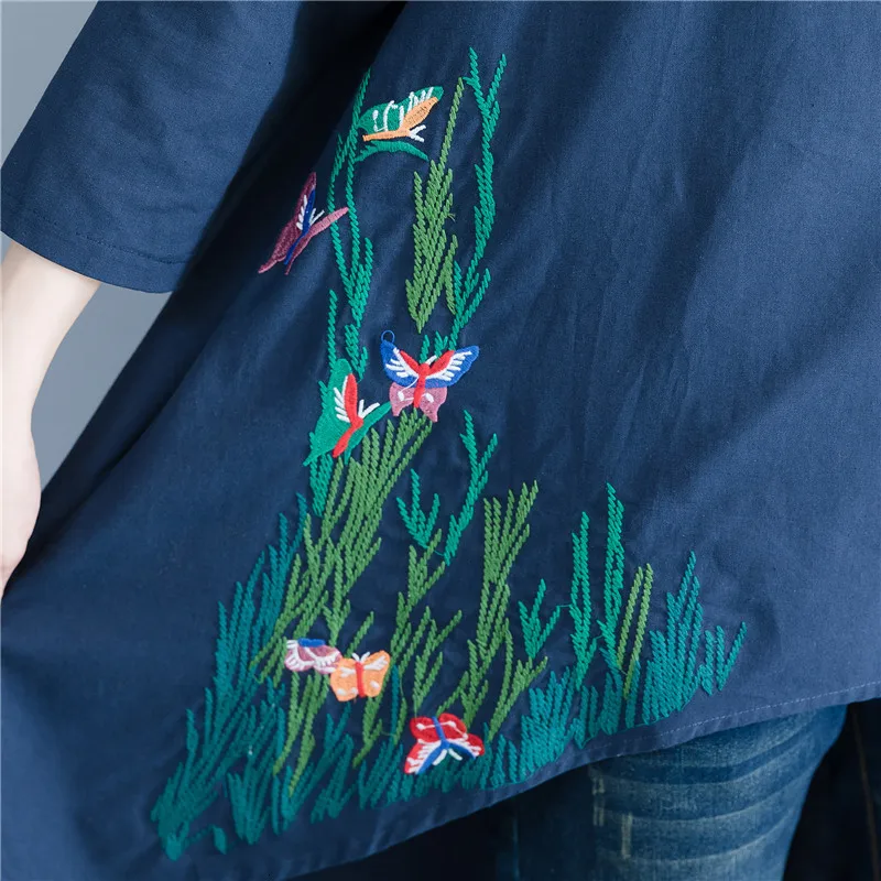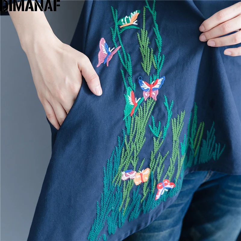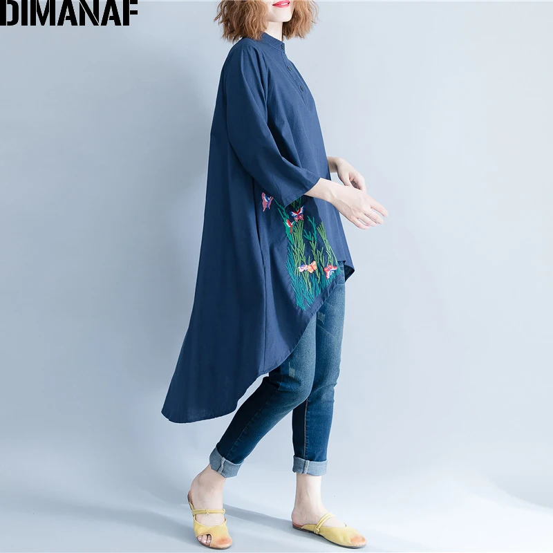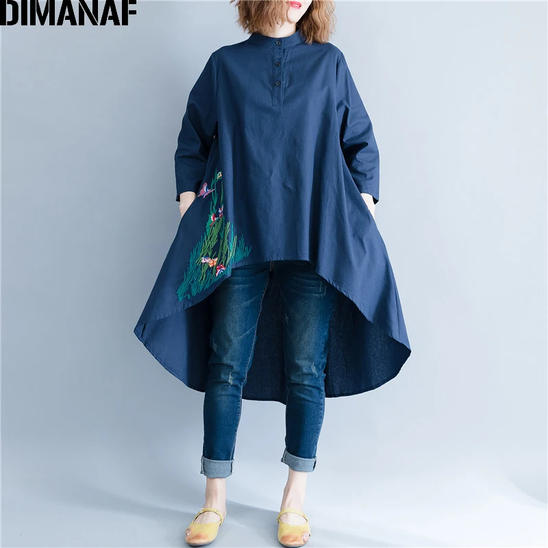 Женская льняная блузка DIMANAF, тонкая рубашка с длинным рукавом и вышивкой, Повседневная Свободная блузка большого размера на осень, размера плюс, 2XL