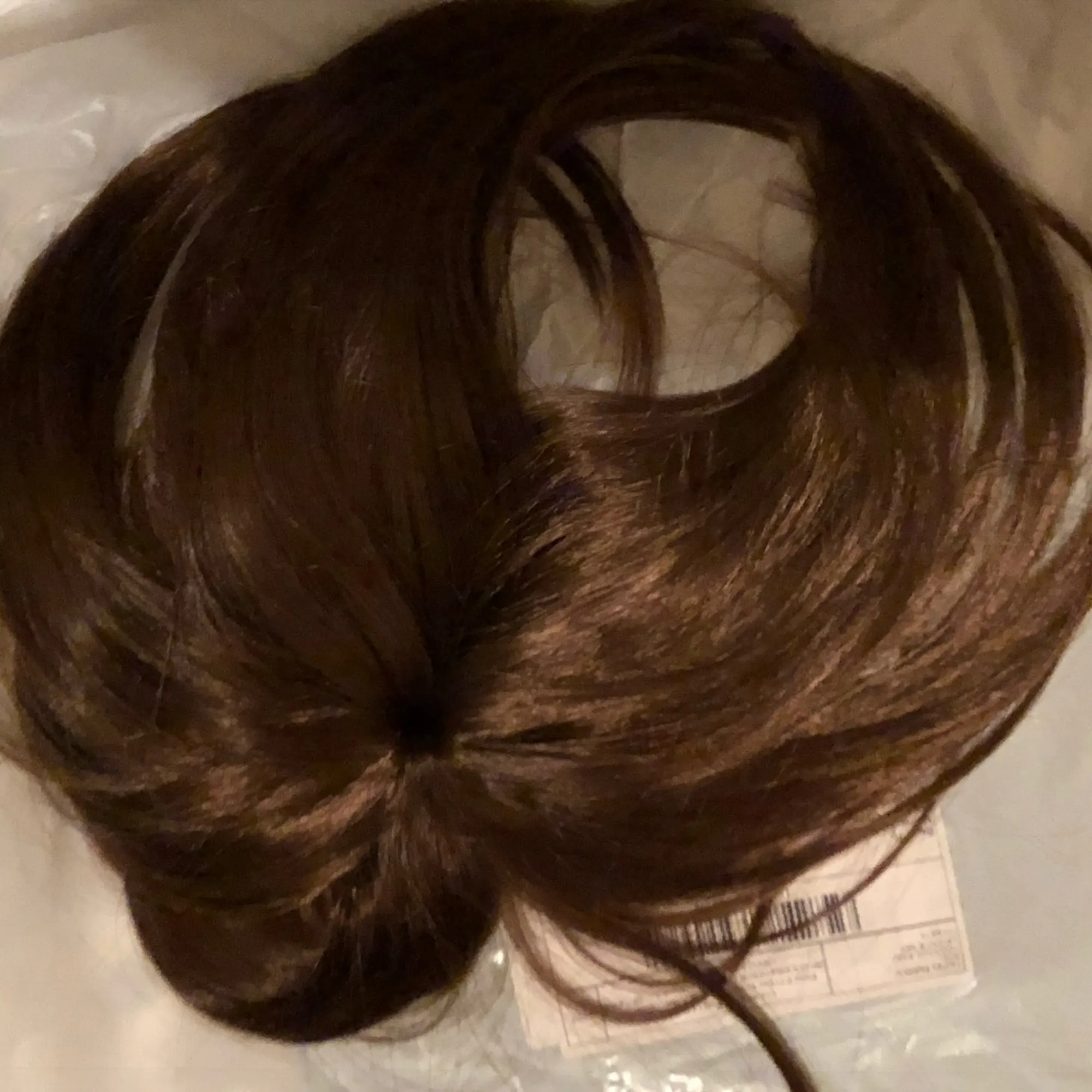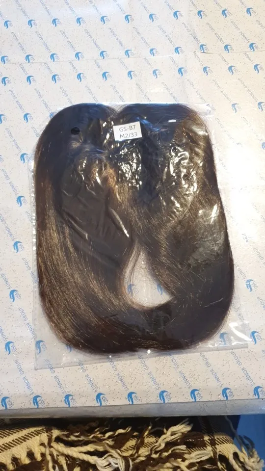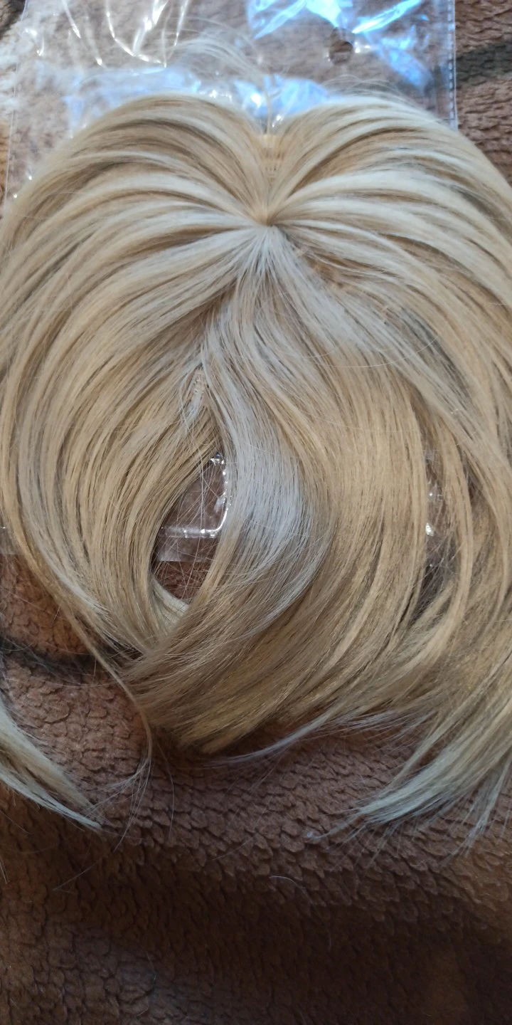 Товар был упакован только в один пакет. Получила быстро в Подмосковье. Но волосы выглядят кукольными. Чёлка очень густая, нужно прореживать для естественного вида. Сзади на макушке волосы расходятся. Сделано по принципу собранного пучка в центре, не очень красиво смотрится, не натурально. Использовать не буду. С продавцом списывалась, но он уверил, что так должно быть - спорить не стала. Может кому-то подойдёт, если перевернуть задом наперёд и носить на "пробор". Цвет не совсем мой, но это уж не угадала. Цвет 30, хотя в другом месте 30 был более естественный и темнее. Мой цвет волос -карамель. Наверное с тёмным цветом бывает проще подобрать, но данная накладка больше подходит под мини-паник.